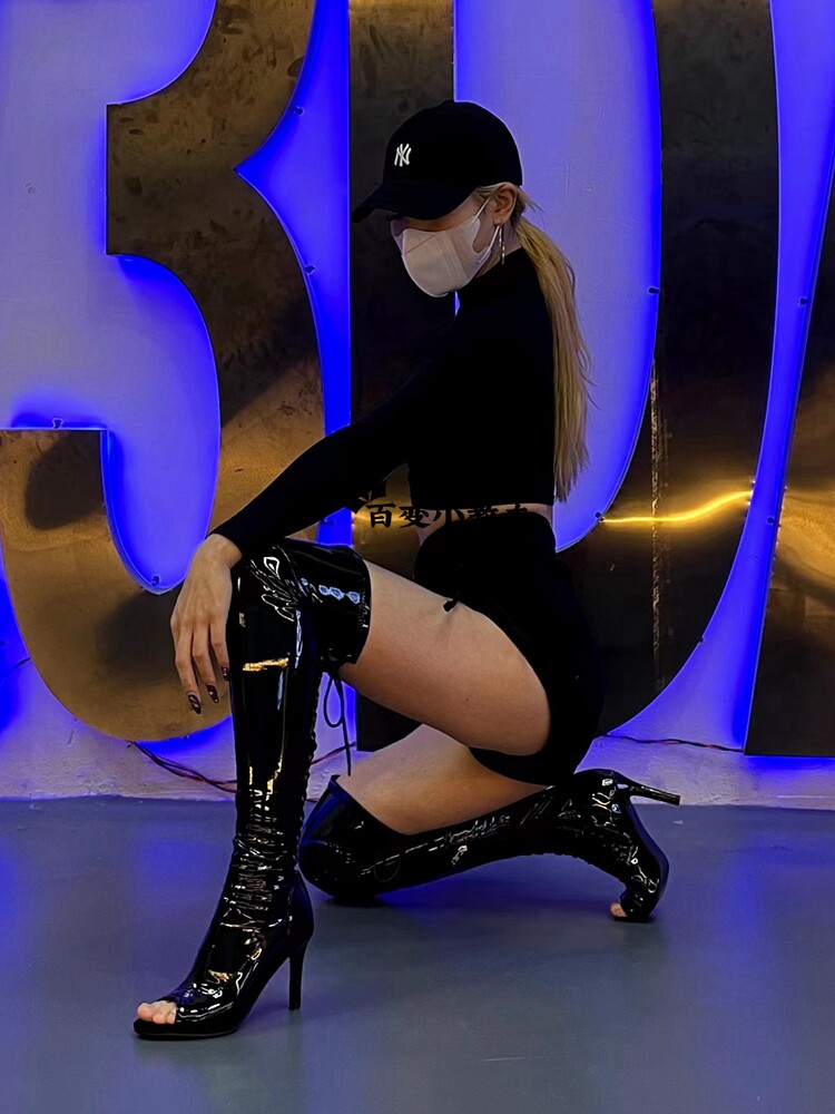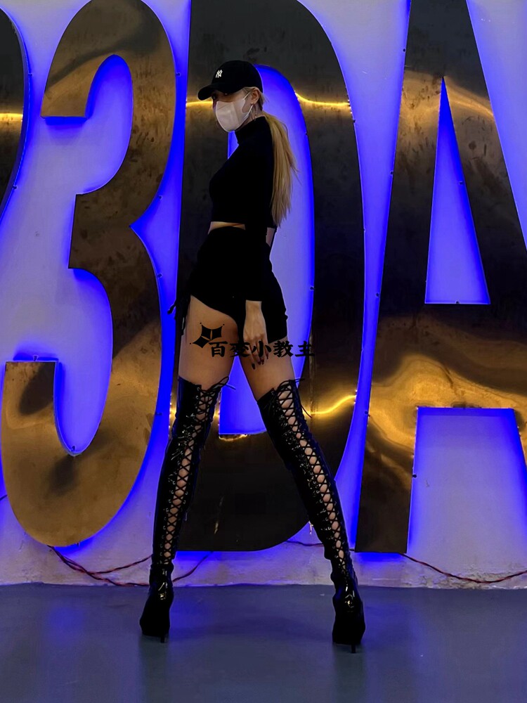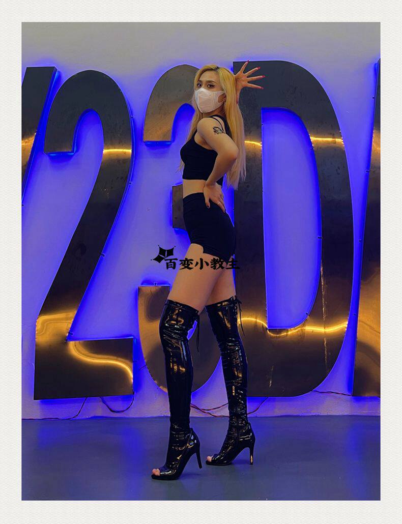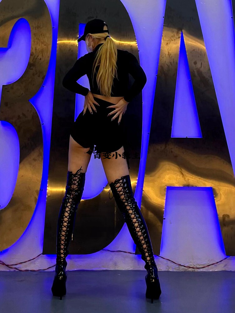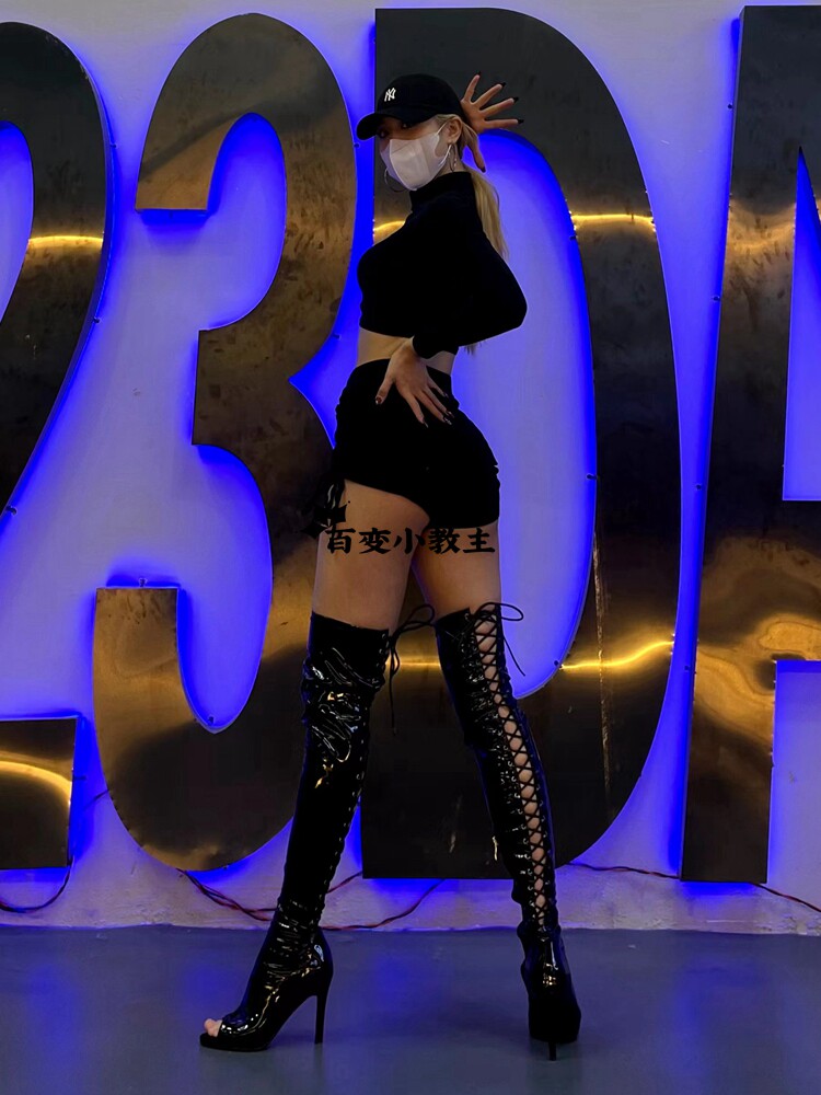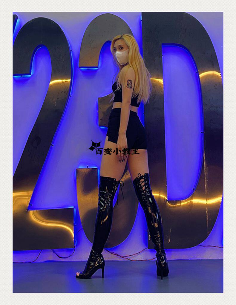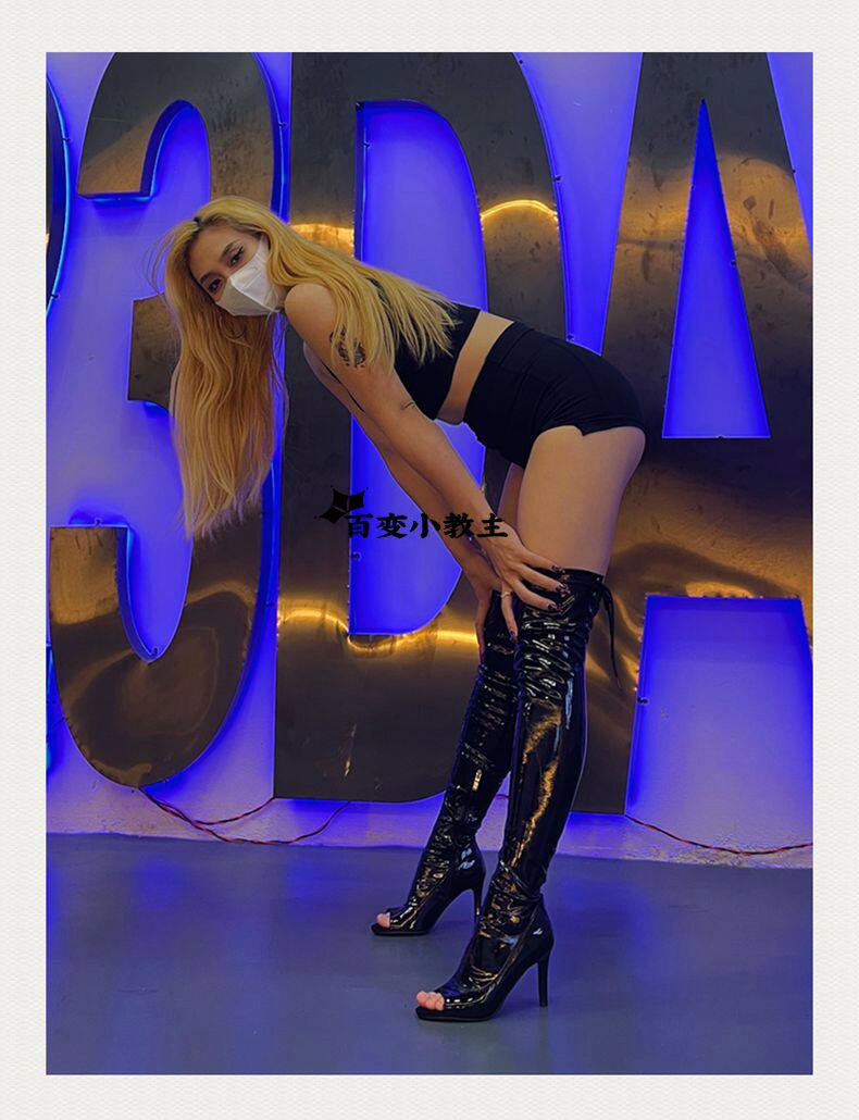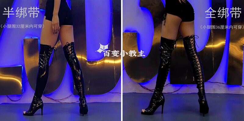 [同款定制高跟靴高筒靴跳舞过膝靴heels爵士舞jazz鱼嘴绑带长靴]