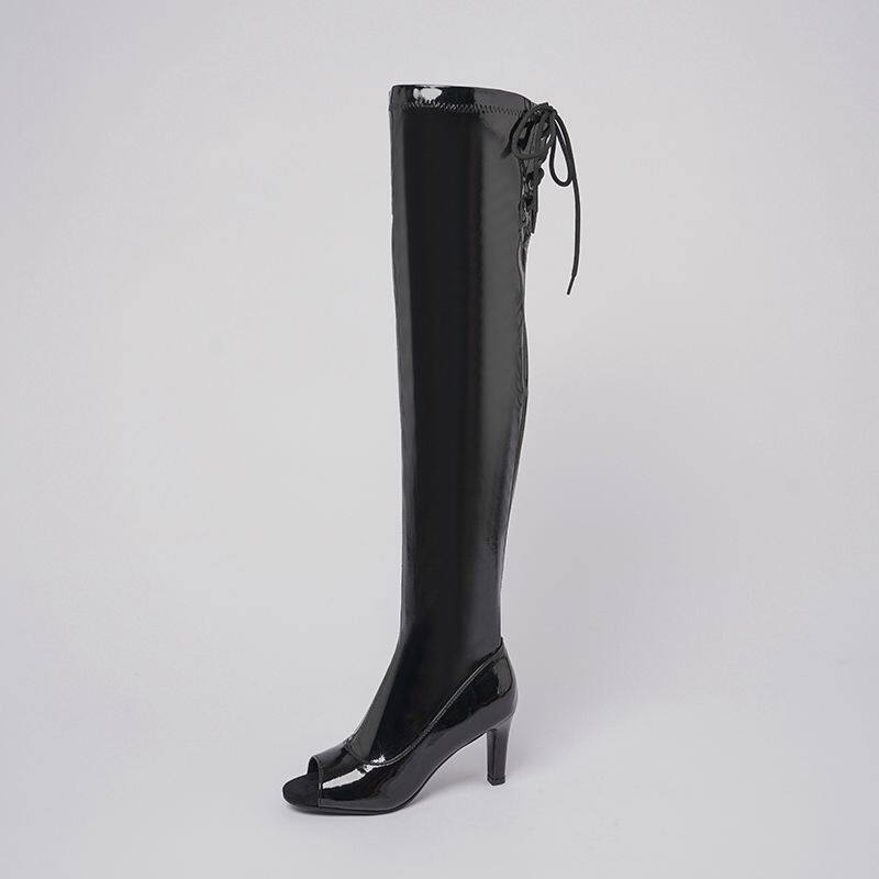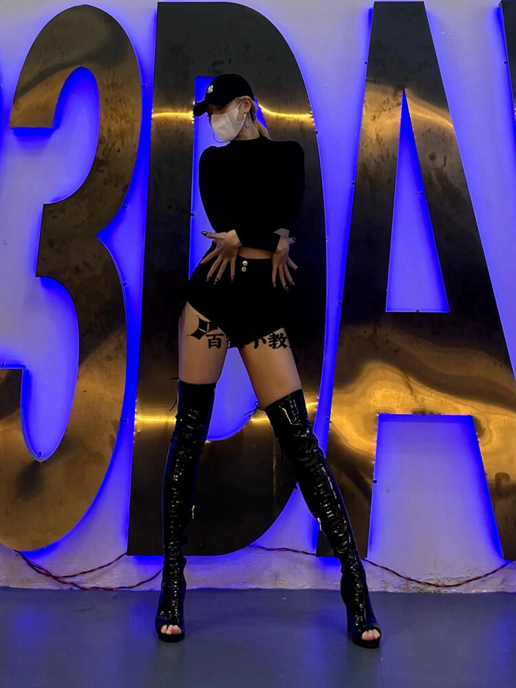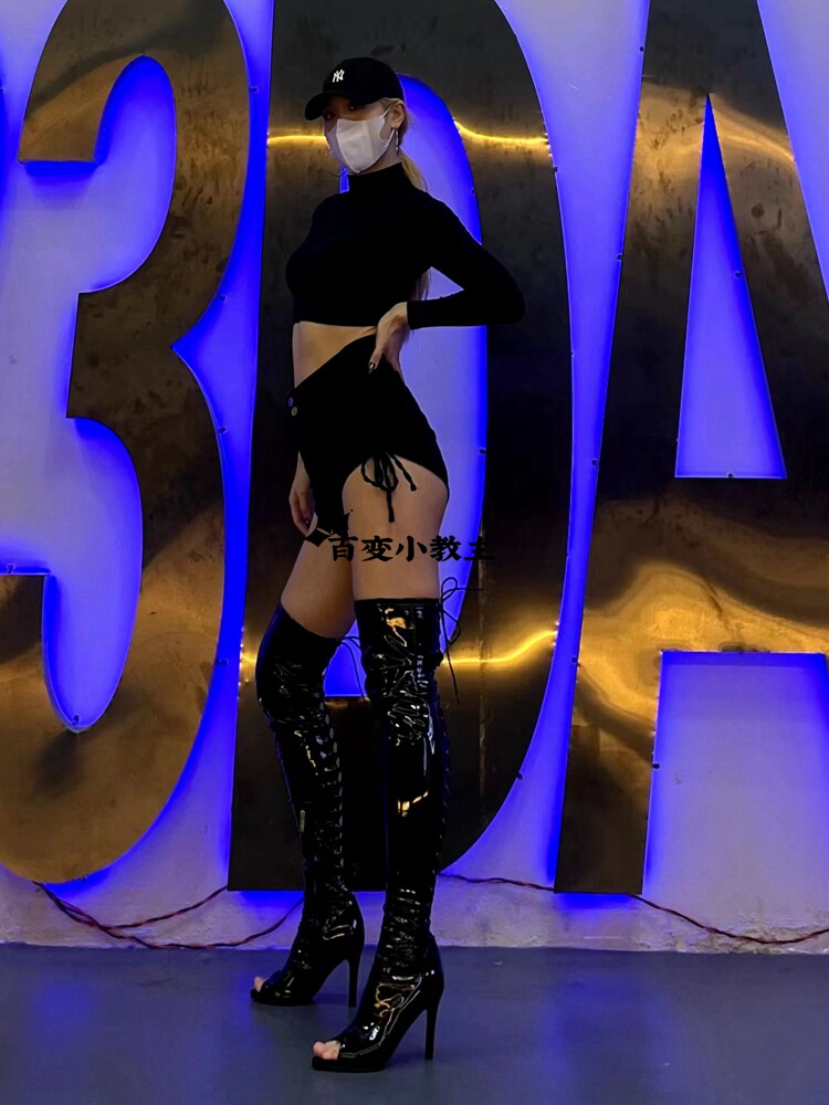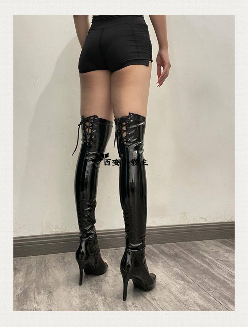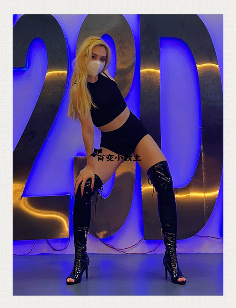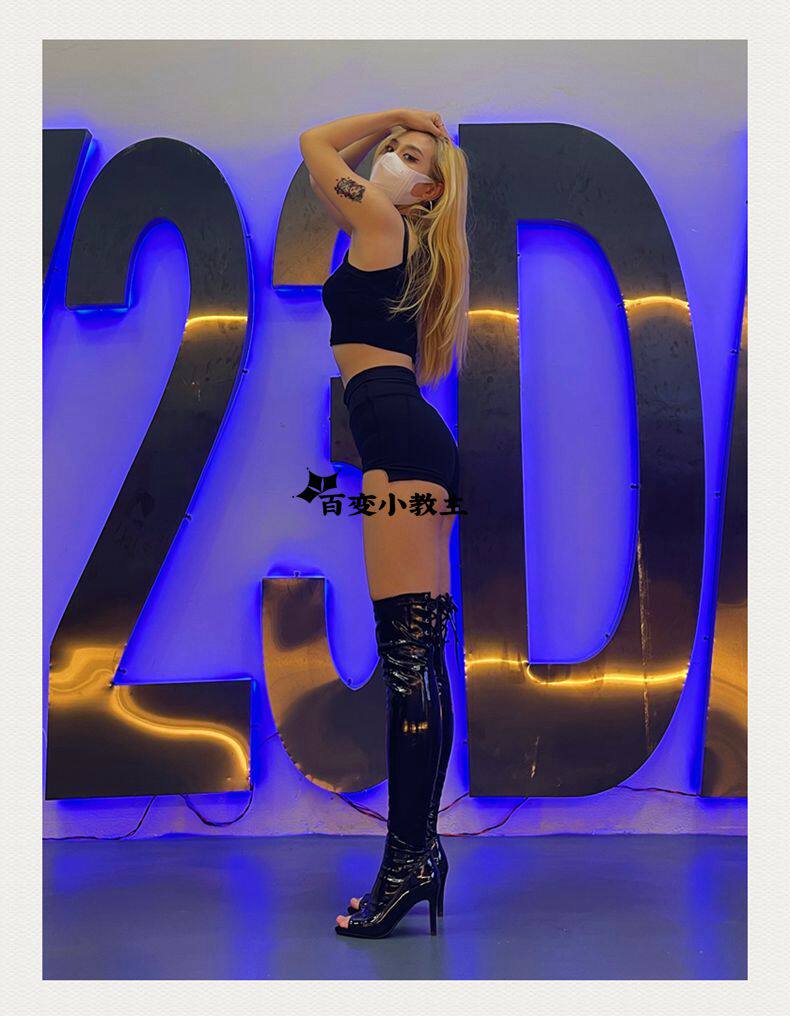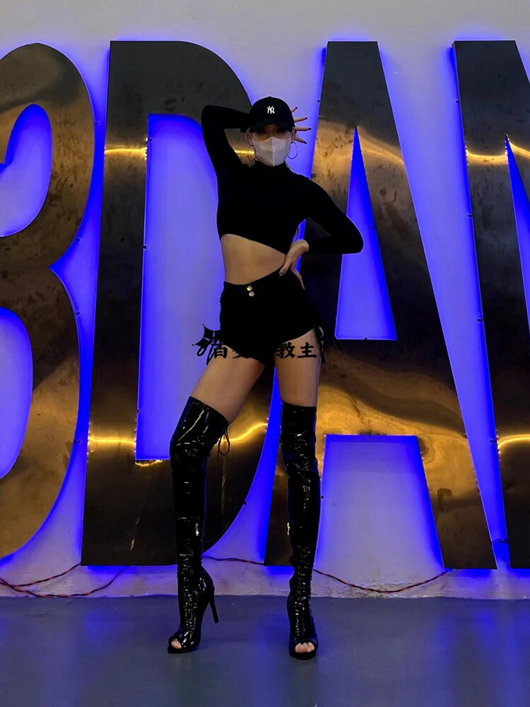 [同款定制高跟靴高筒靴跳舞过膝靴heels爵士舞jazz鱼嘴绑带长靴]