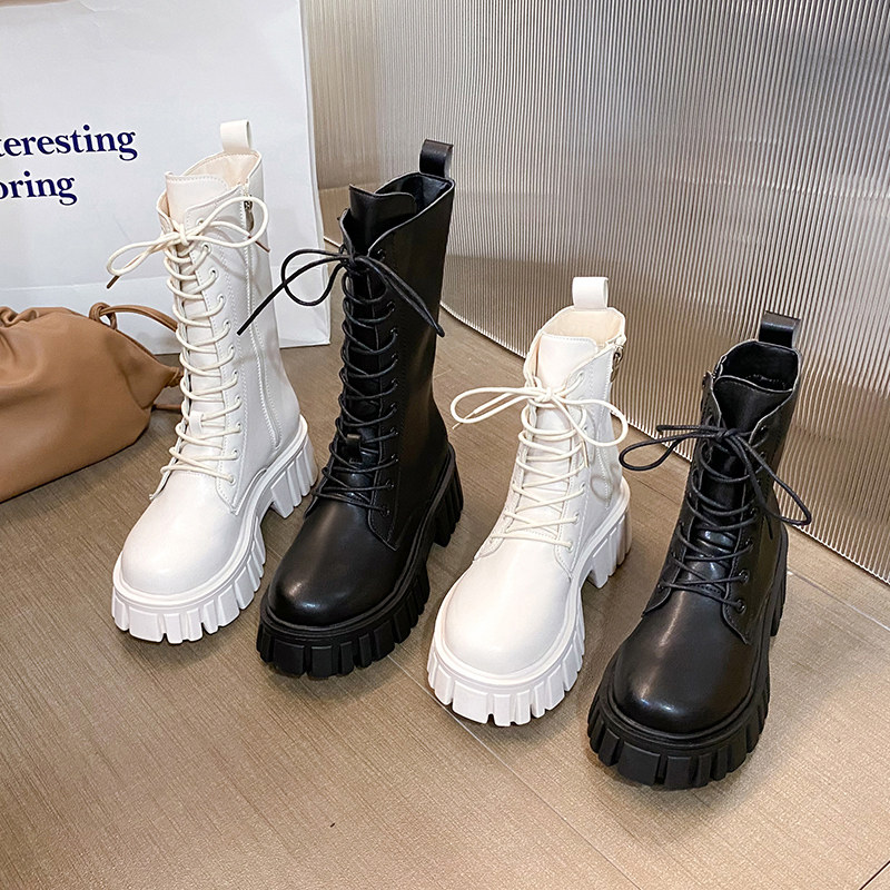 Martens, высокие демисезонные флисовые белые короткие сапоги в английском стиле на платформе, подходит для подростков, в британском стиле, средней длины