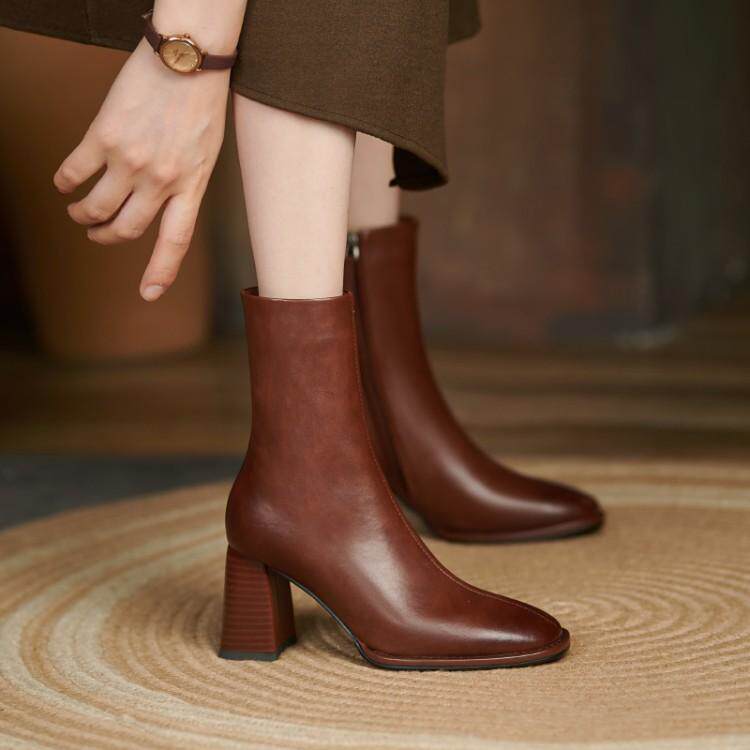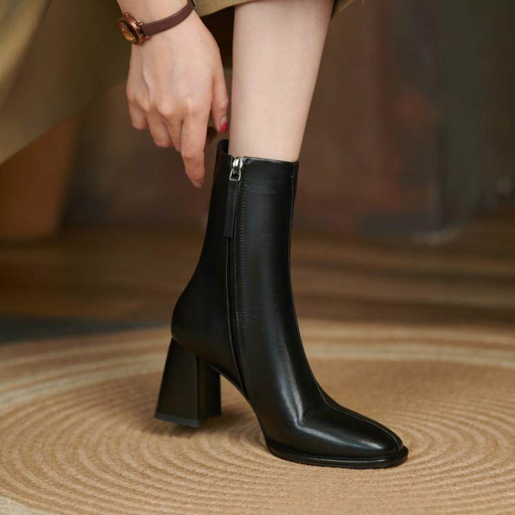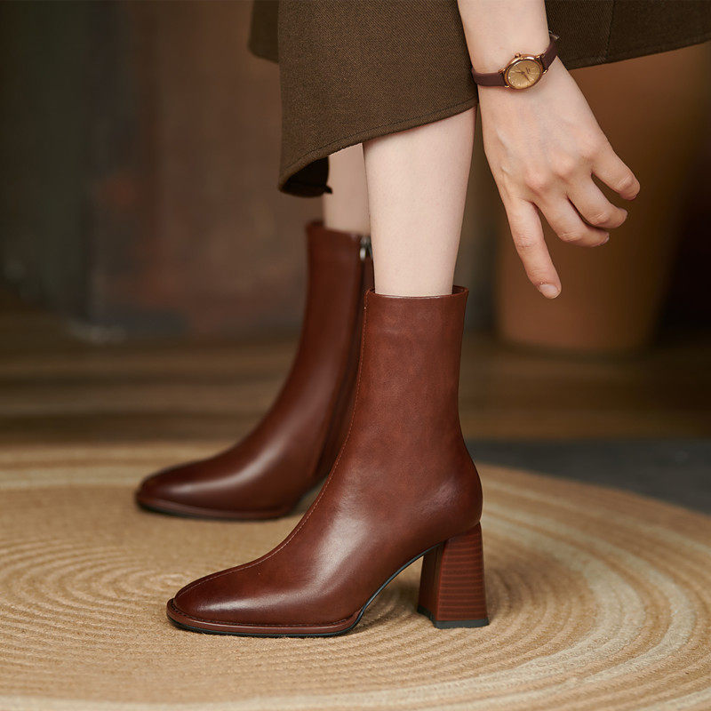 Martens, демисезонные челси, короткие сапоги на высоком каблуке, из натуральной кожи, по фигуре