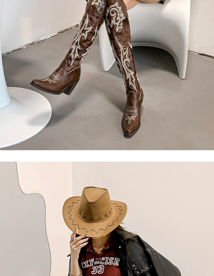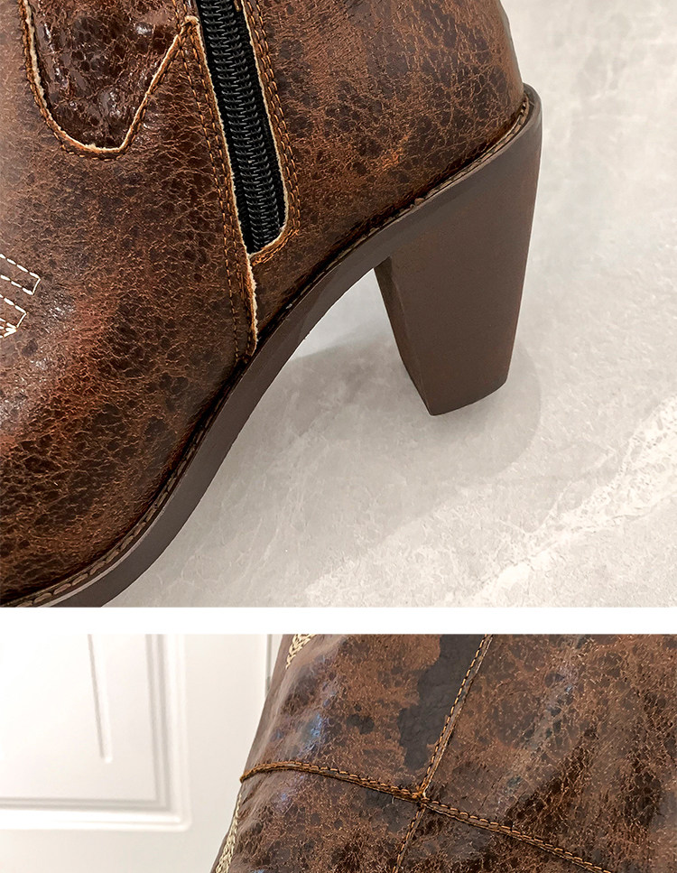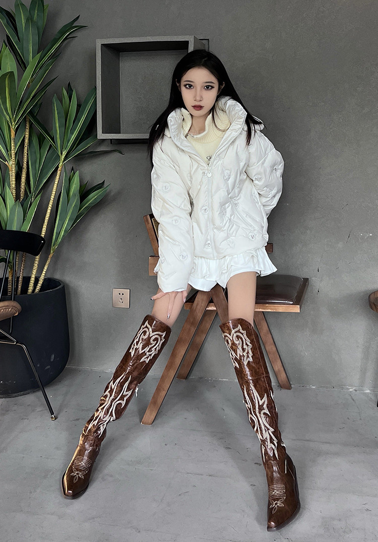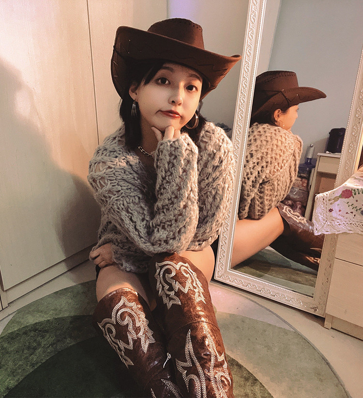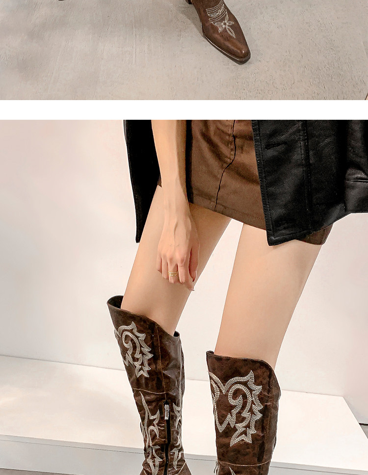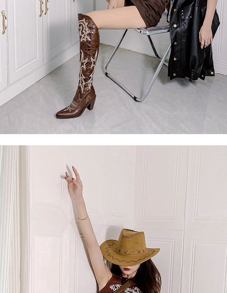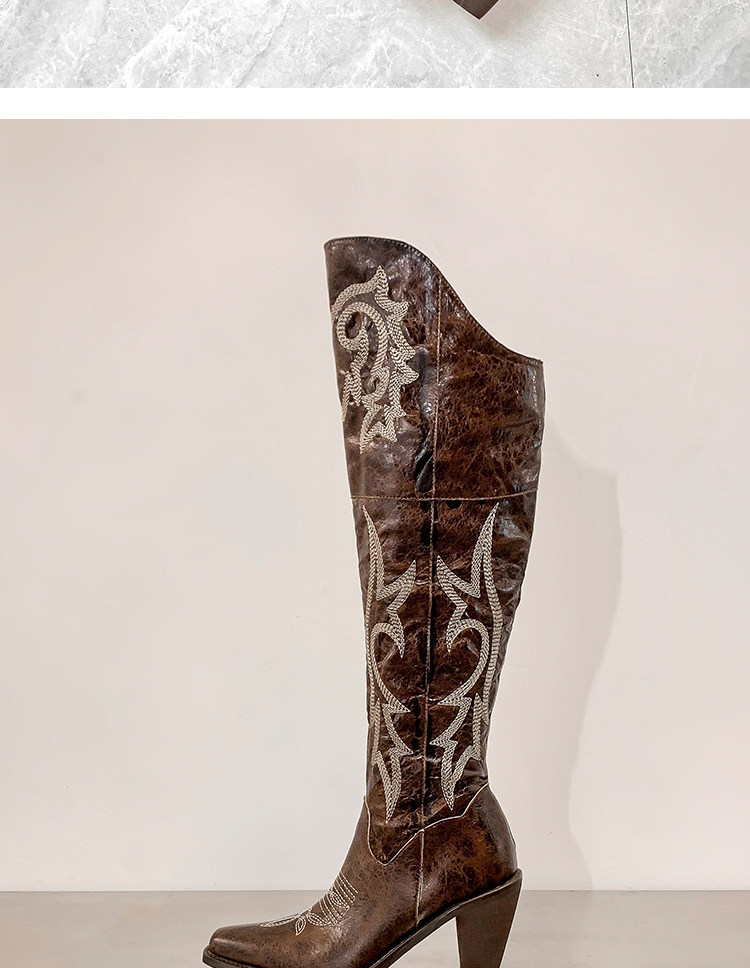 Демисезонные джинсовые высокие коричневые сапоги с заостренным носом