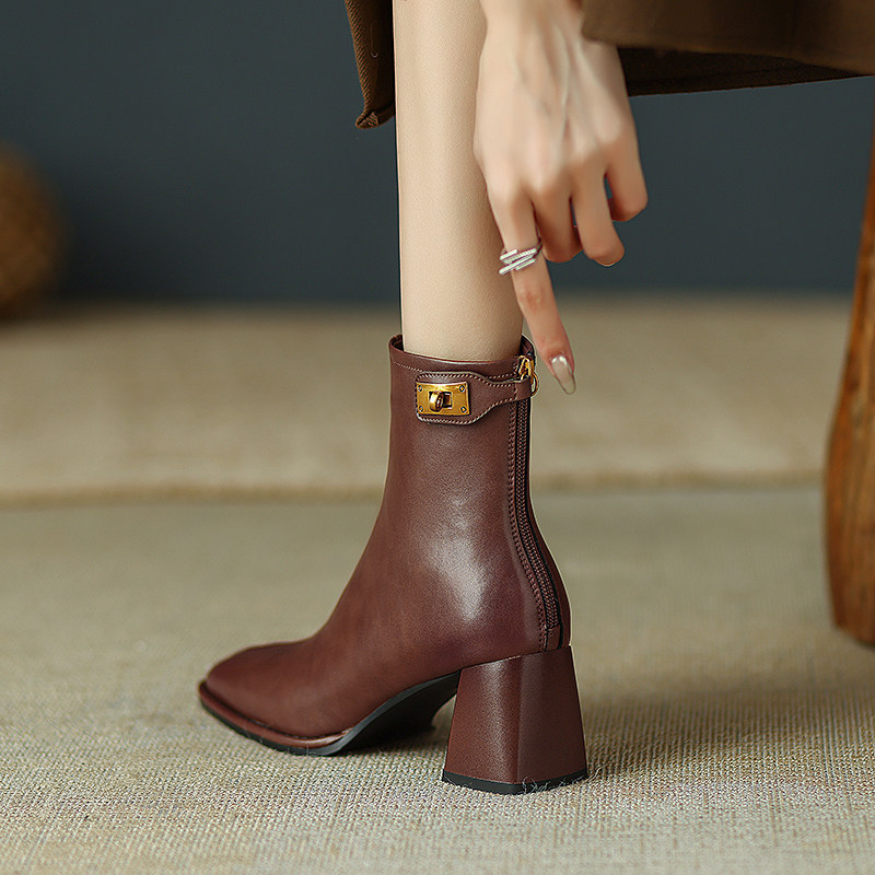Martens, демисезонные коричневые высокие короткие сапоги, яркий броский стиль