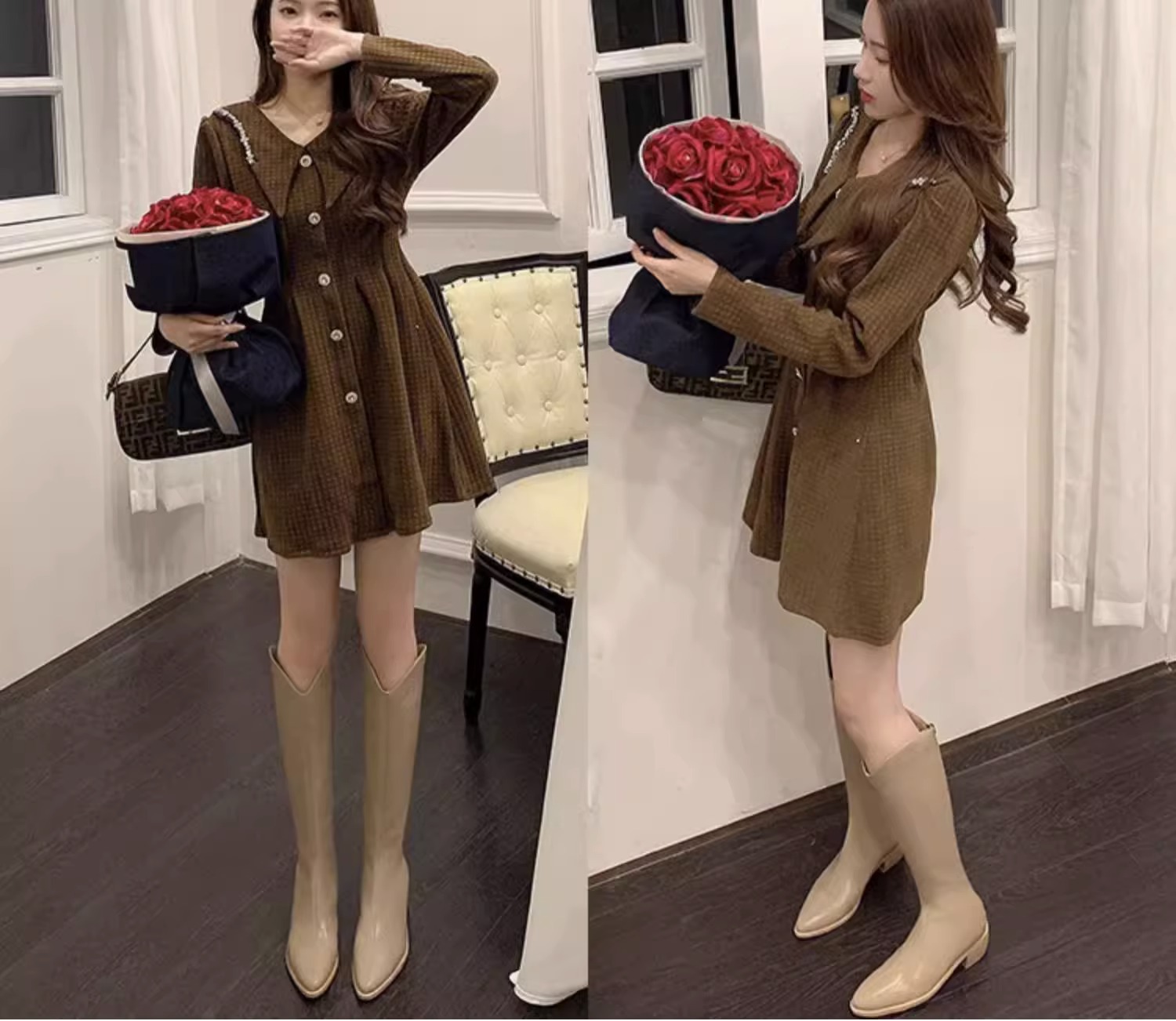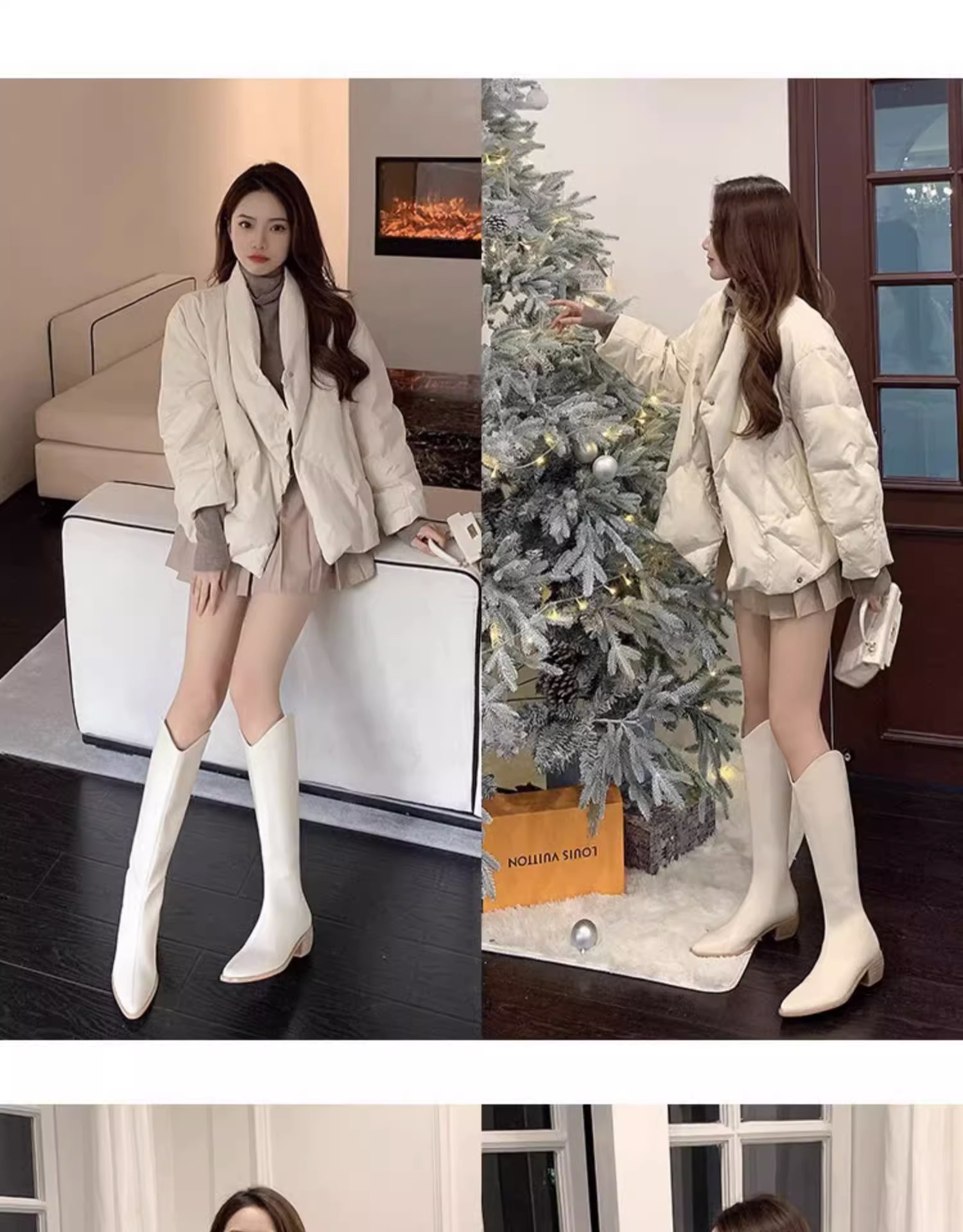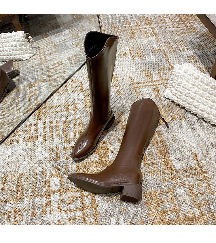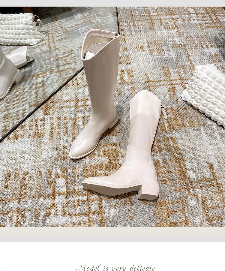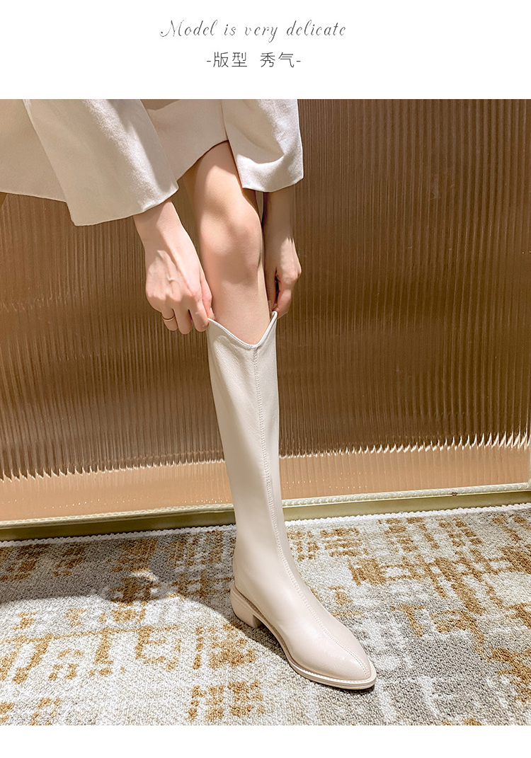 Высокие белые высокие сапоги с заостренным носом, высокий чай с молоком, из натуральной кожи, подходит для подростков