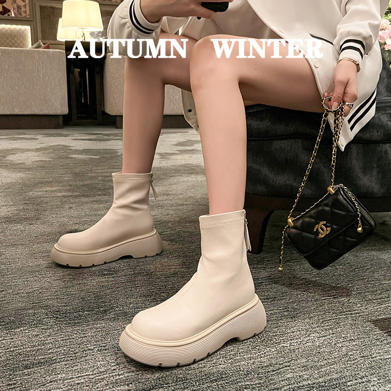 Martens, белые короткие сапоги, челси, ботинки на платформе, демисезонная обувь, из натуральной кожи, подходит для подростков