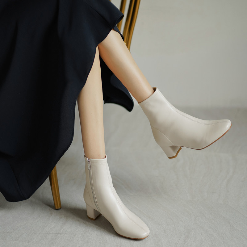 Martens, бежевые весенние белые короткие сапоги на высоком каблуке, французский стиль