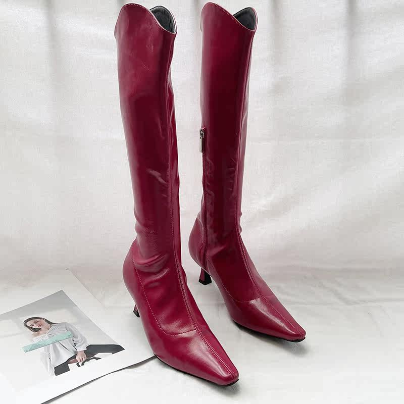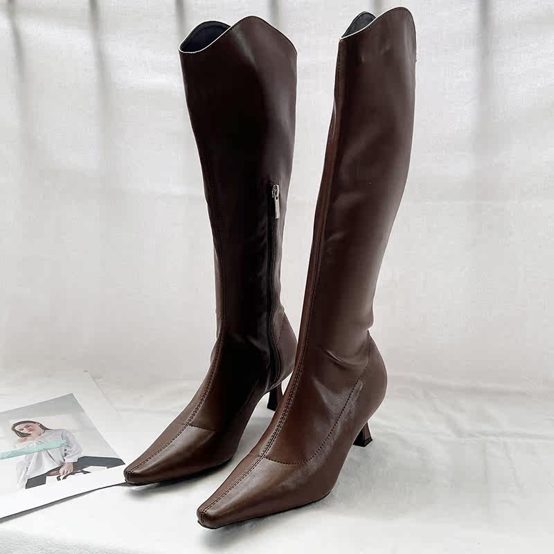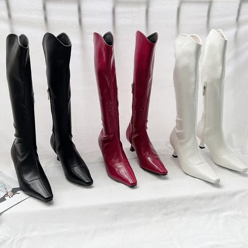 Модные высокие сапоги с заостренным носом с молнией, европейский стиль, коллекция 2022, осенние