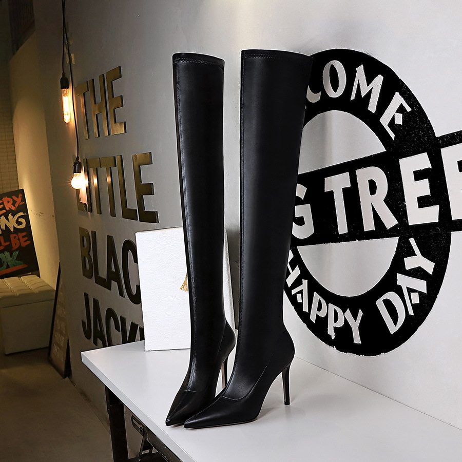 Высокие сапоги, сексуальные высокие ботинки с заостренным носом, популярно в интернете