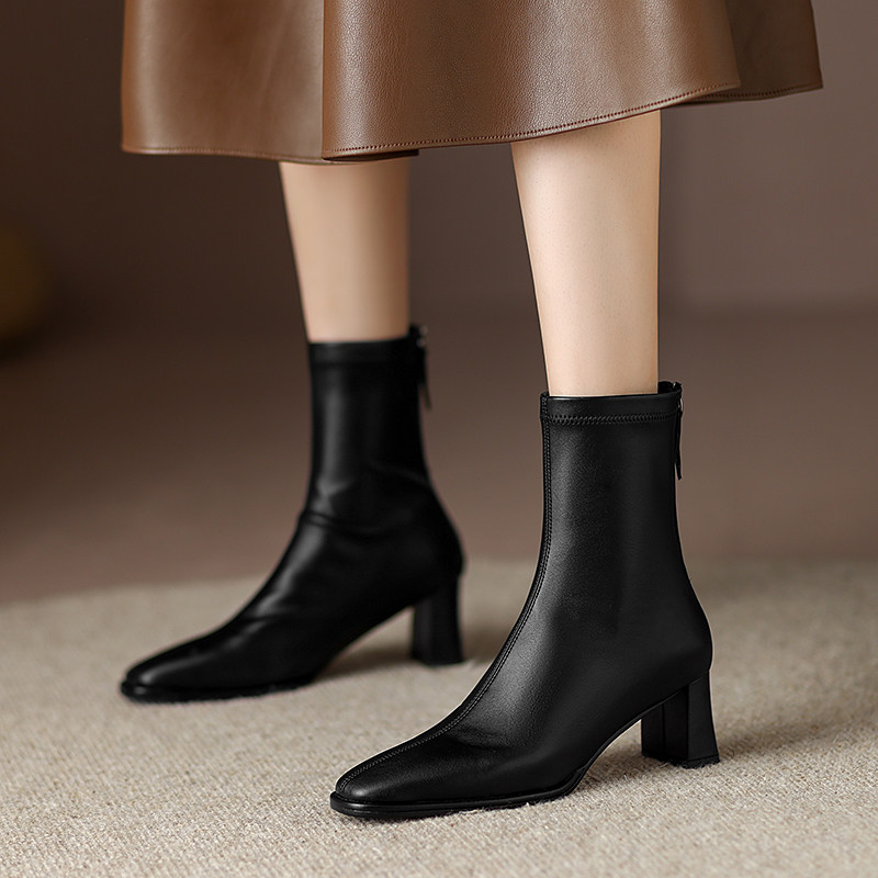 Белые эластичные коричневые короткие сапоги на высоком каблуке, французский стиль, подходит для подростков