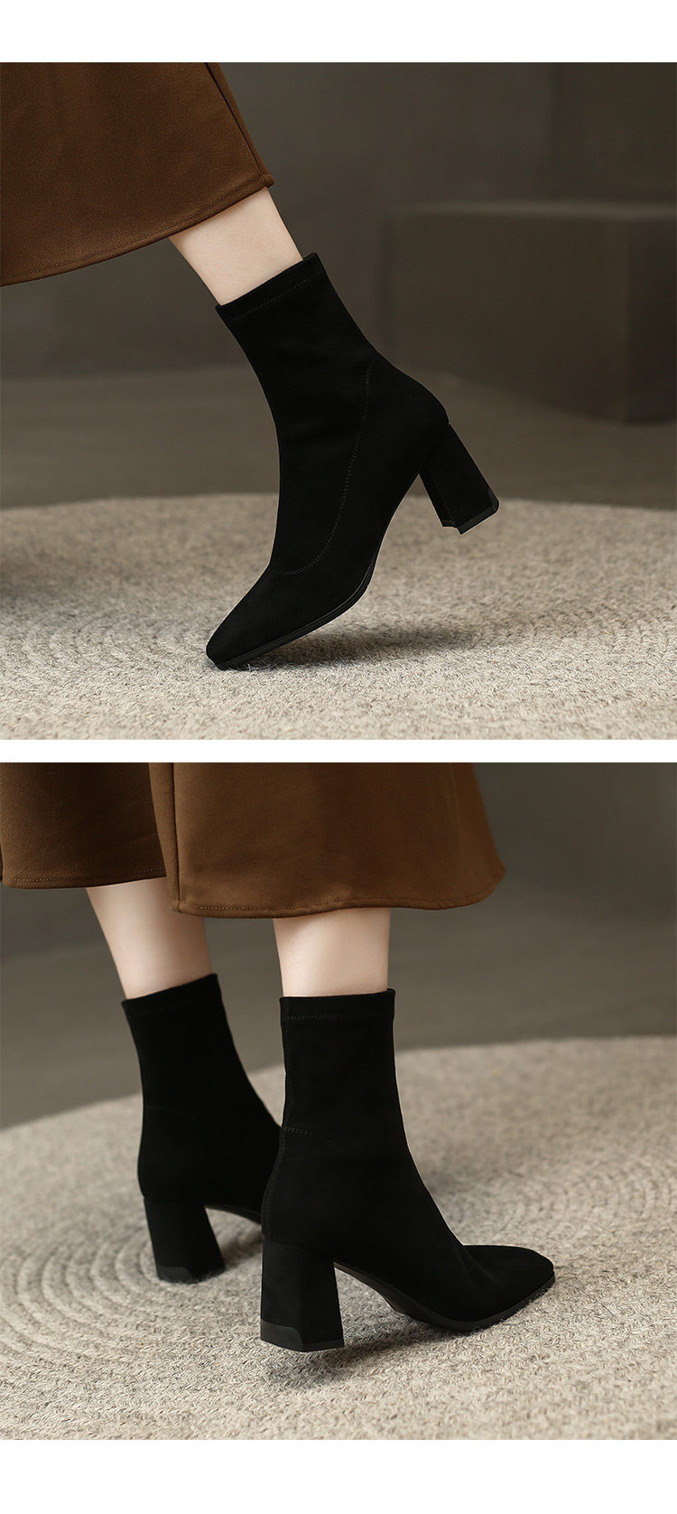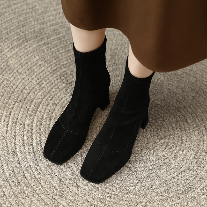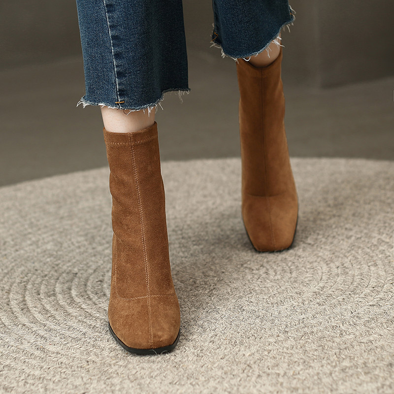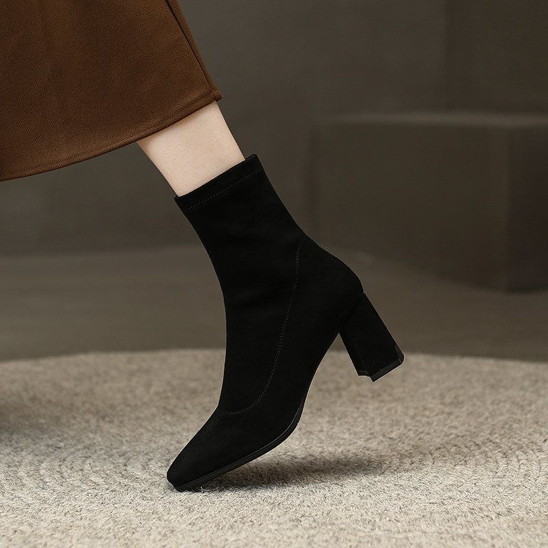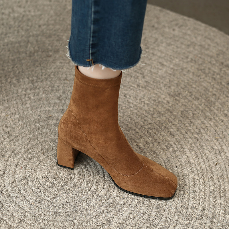 Весенние эластичные универсальные короткие сапоги на высоком каблуке, в корейском стиле