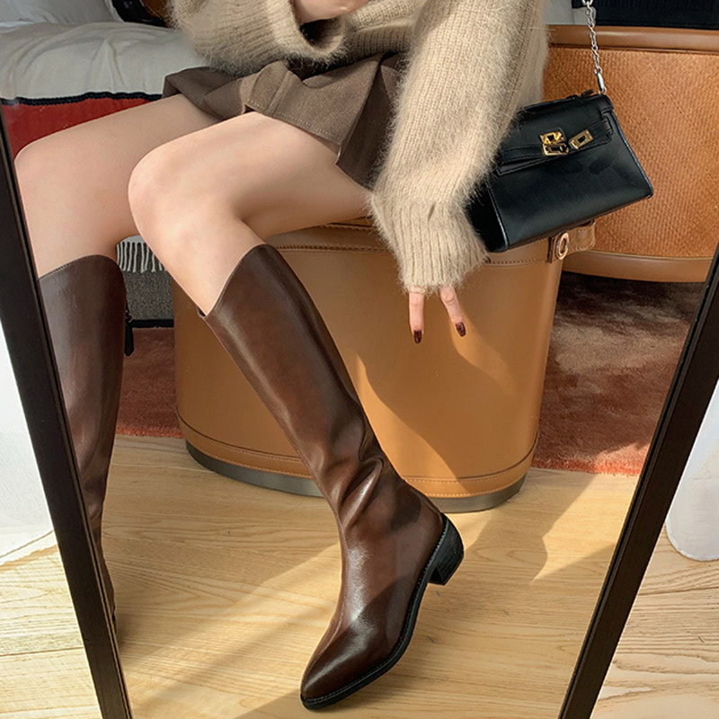Высокие высокие сапоги с заостренным носом, по фигуре