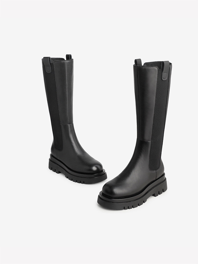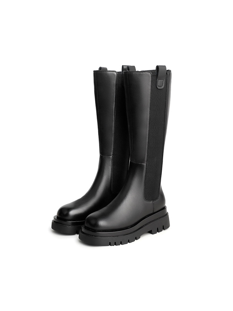 Демисезонные флисовые высокие сапоги на платформе, по фигуре