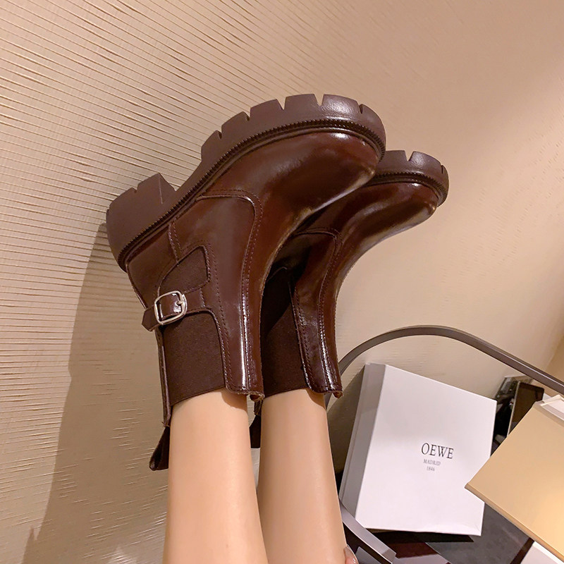 Martens, ретро челси, ремень, пряжка, высокие ботинки в английском стиле, короткие сапоги, из натуральной кожи