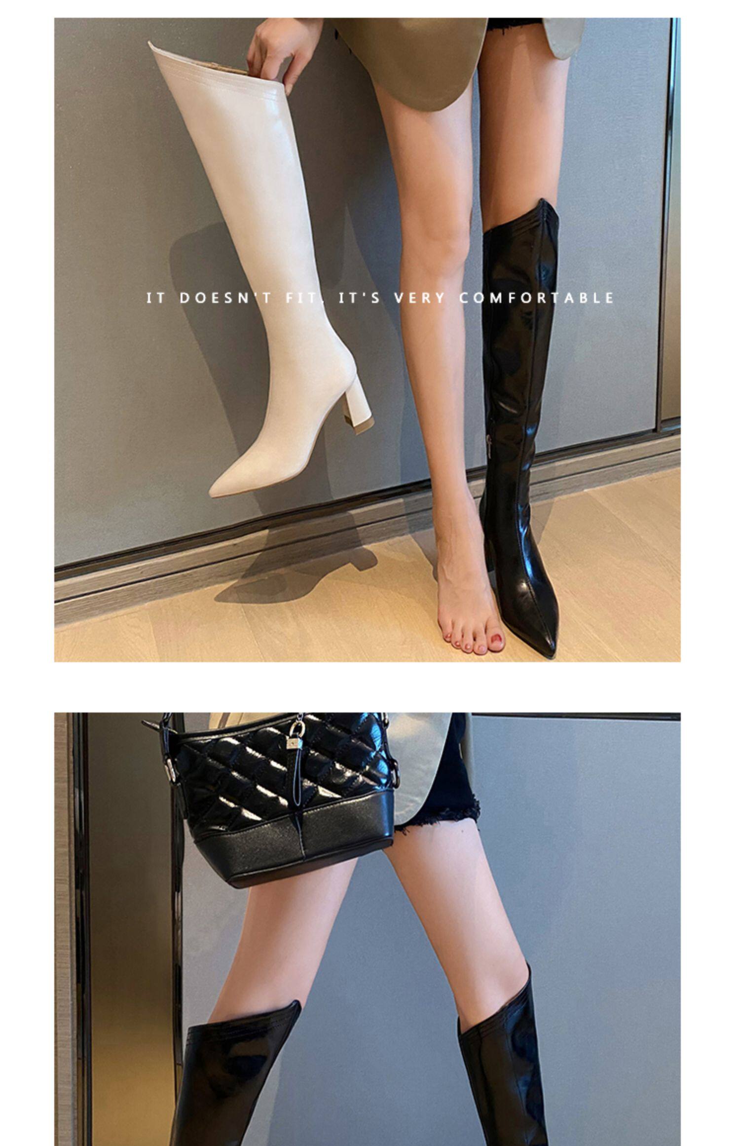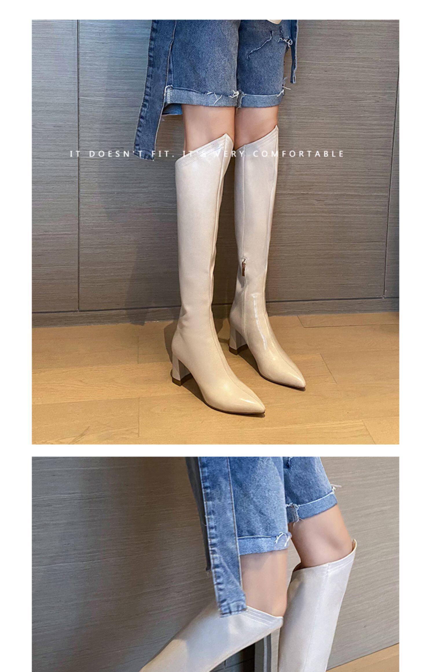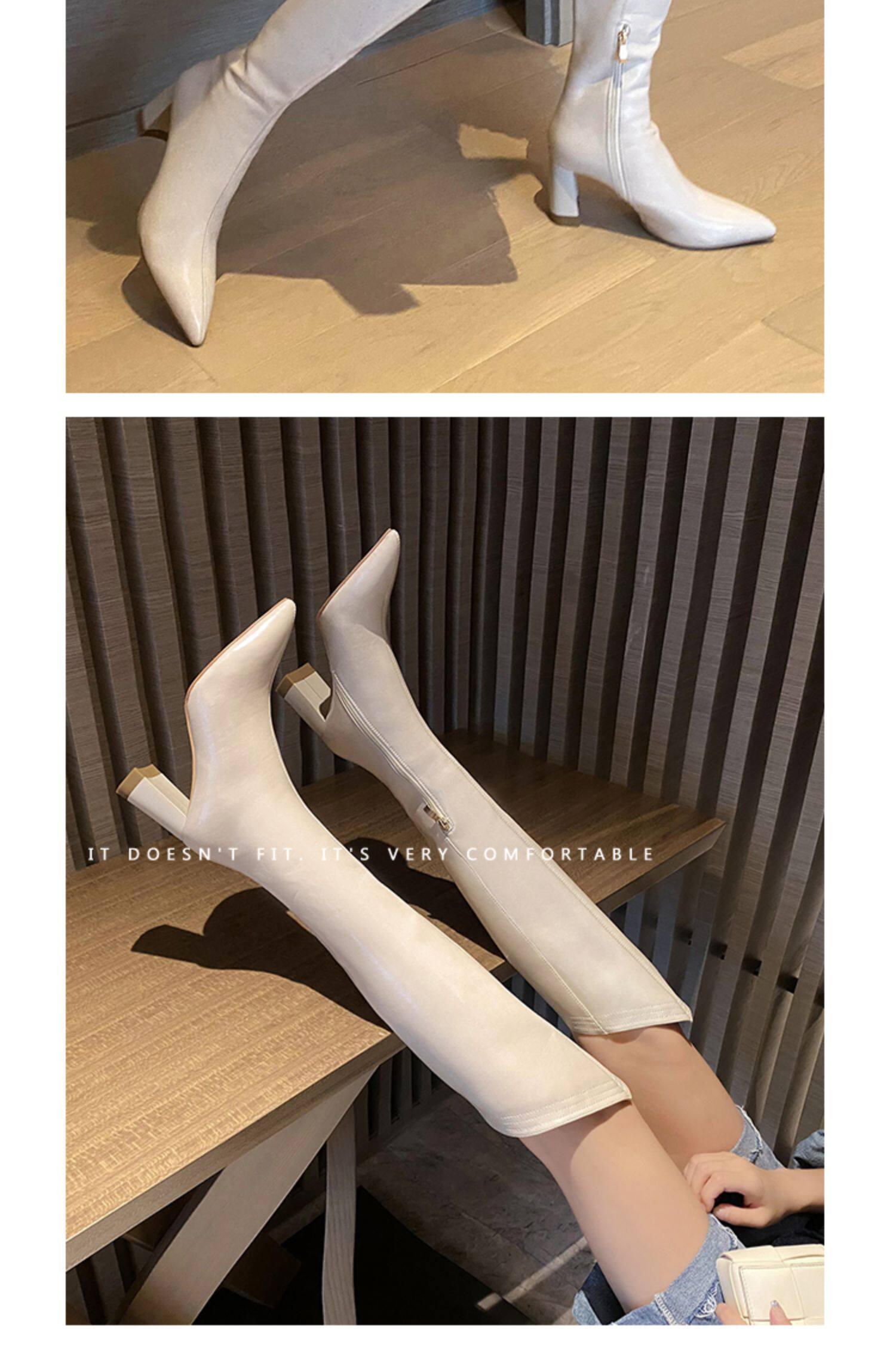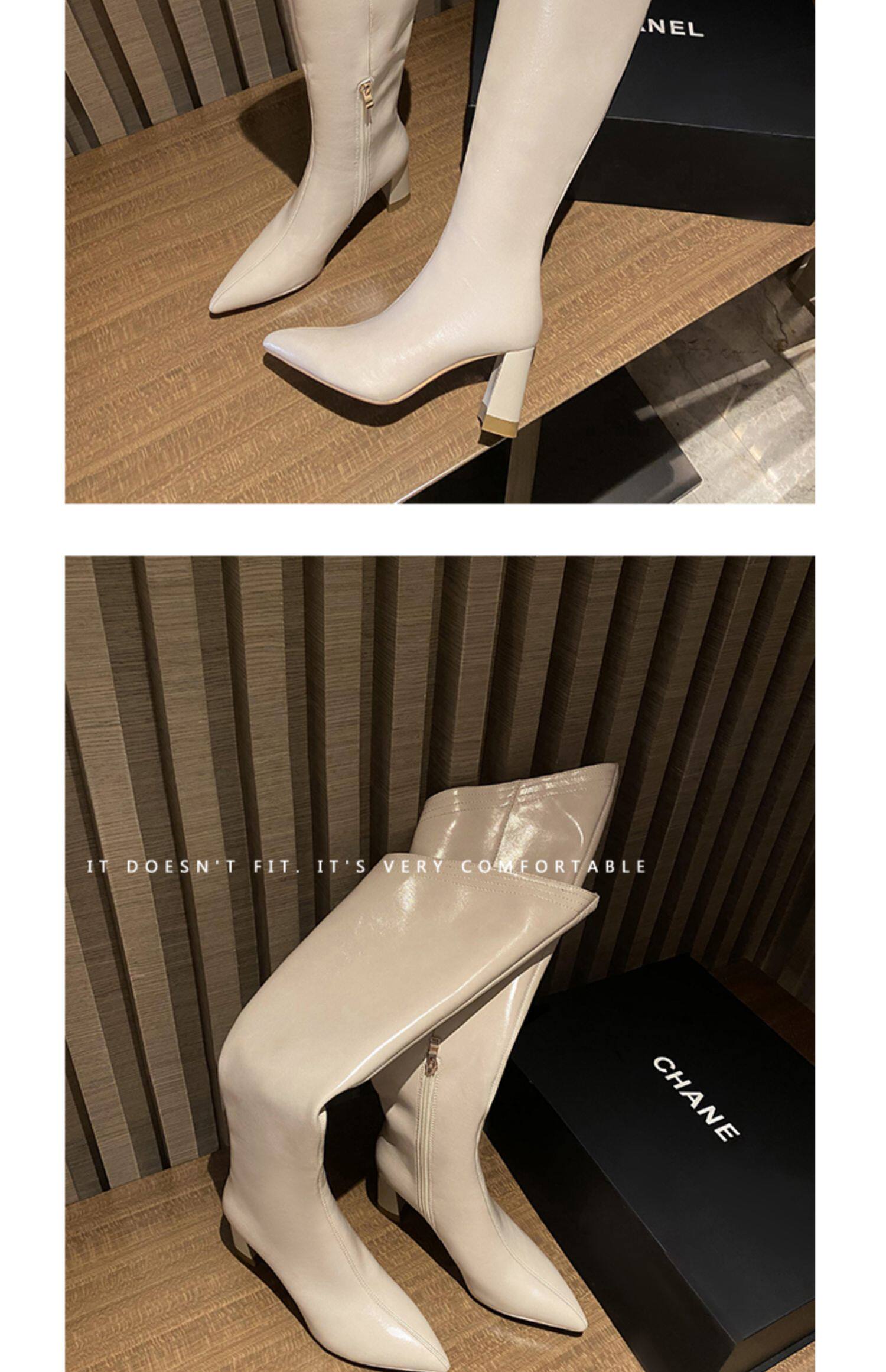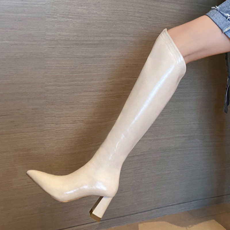 Высокие белые высокие сапоги с заостренным носом, по фигуре, из натуральной кожи