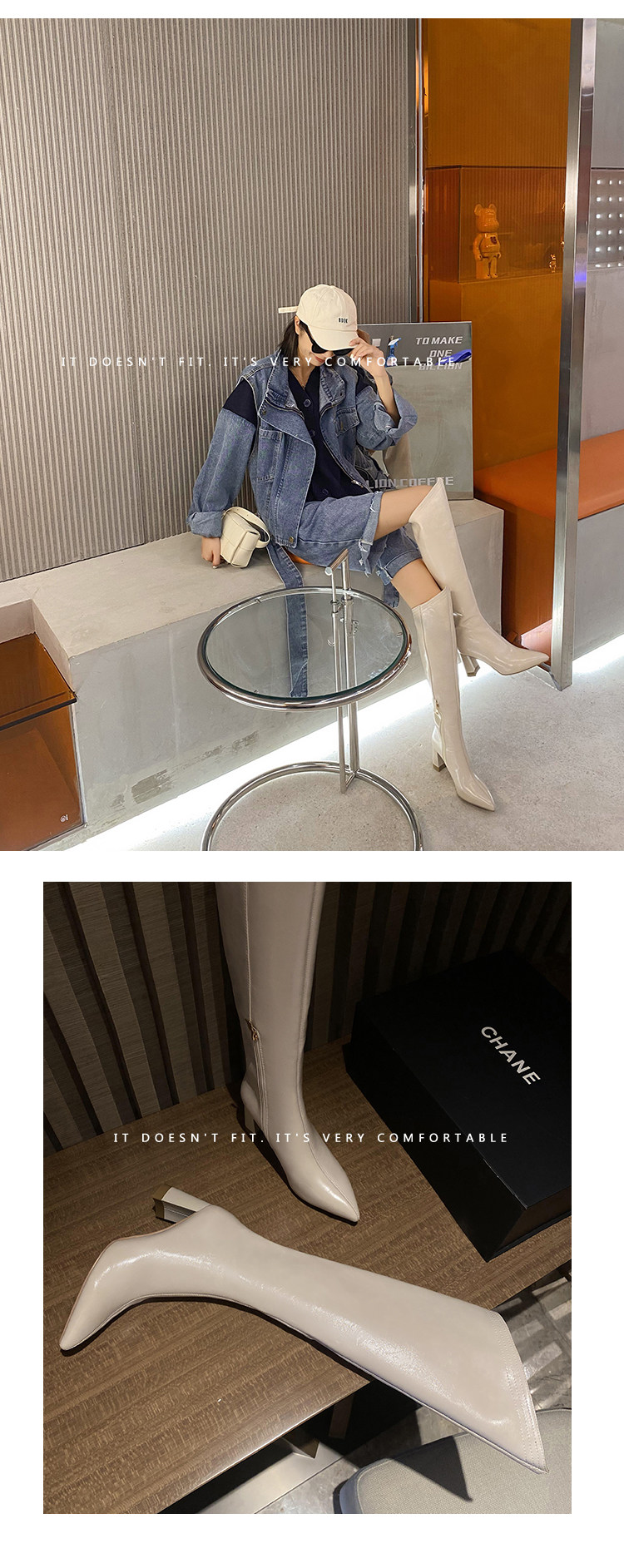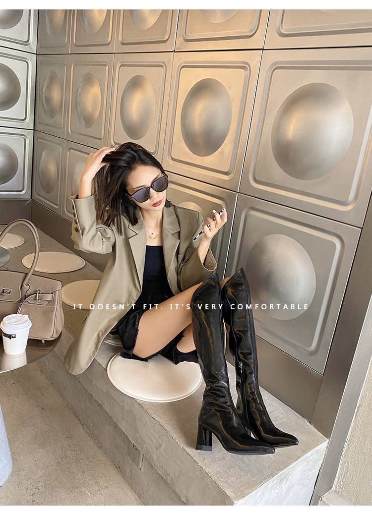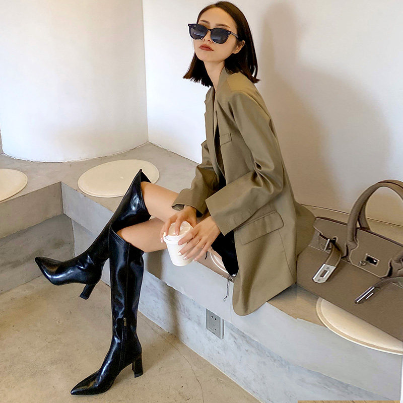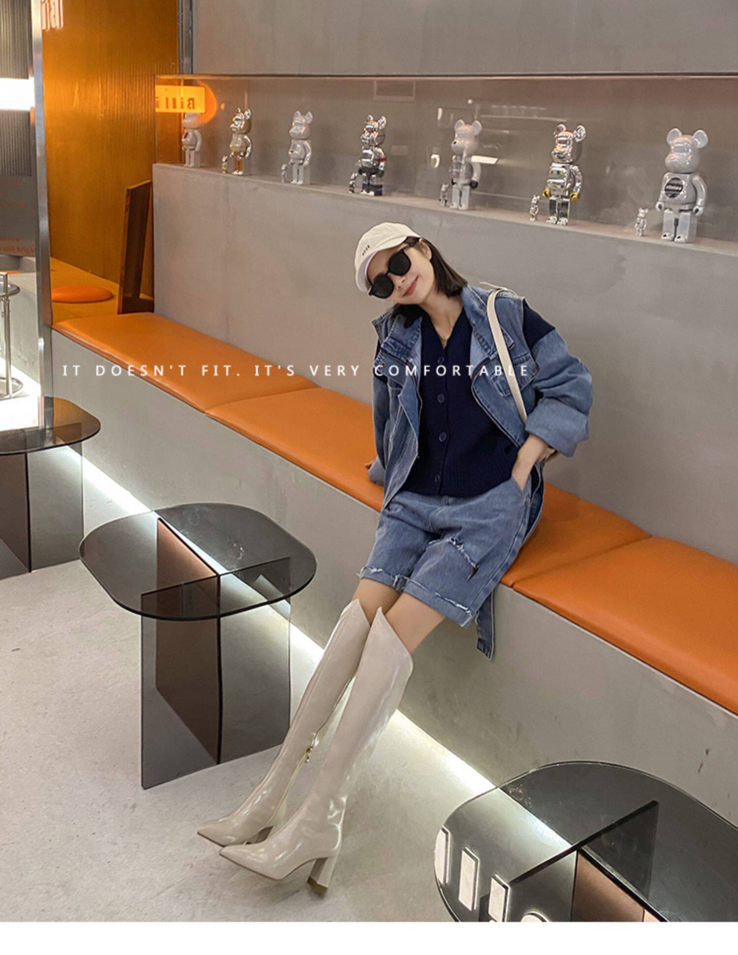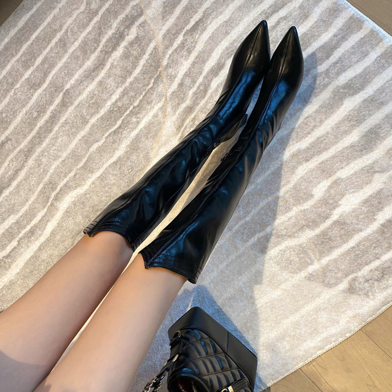 Высокие белые высокие сапоги с заостренным носом, по фигуре, из натуральной кожи