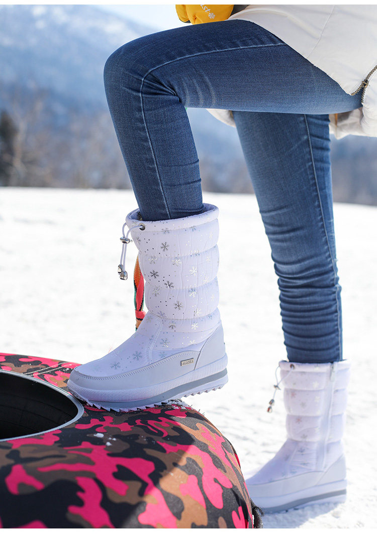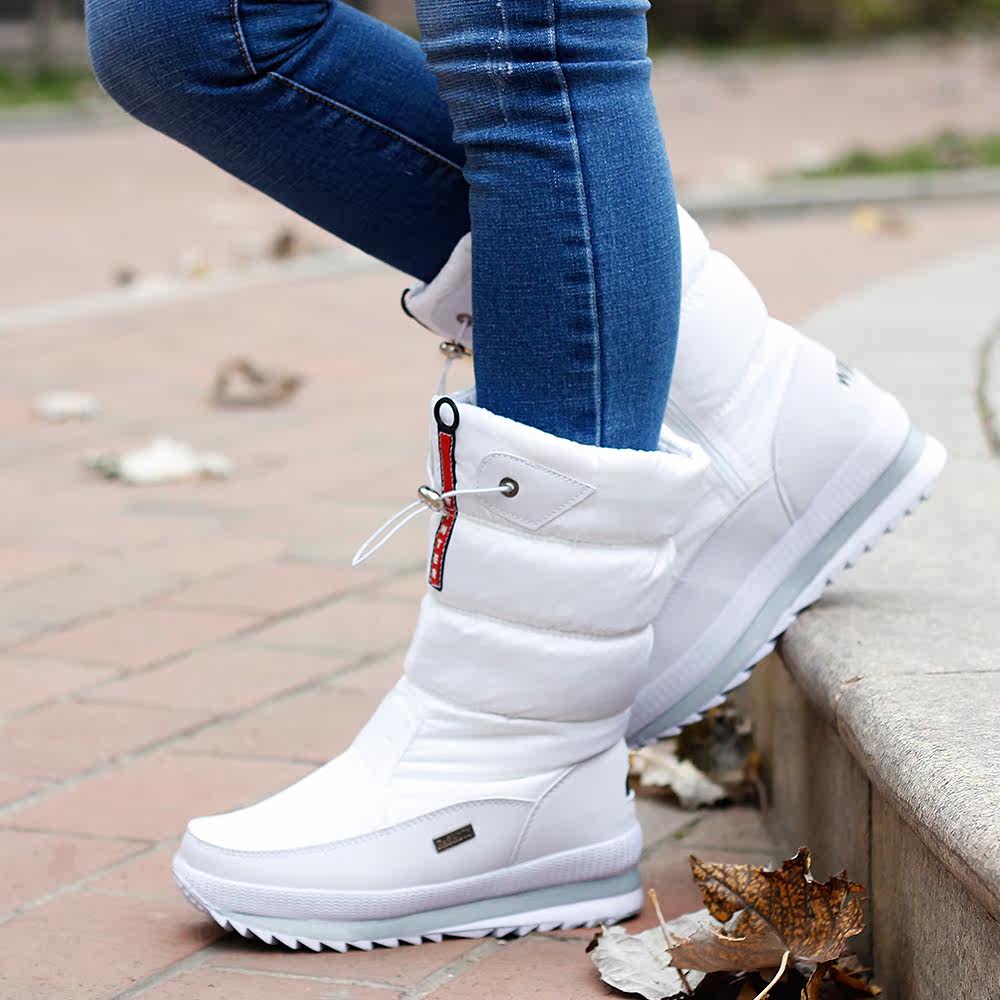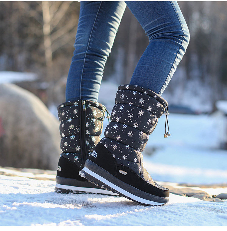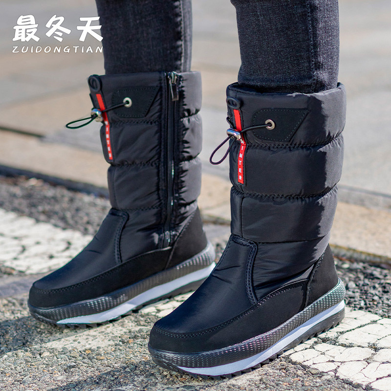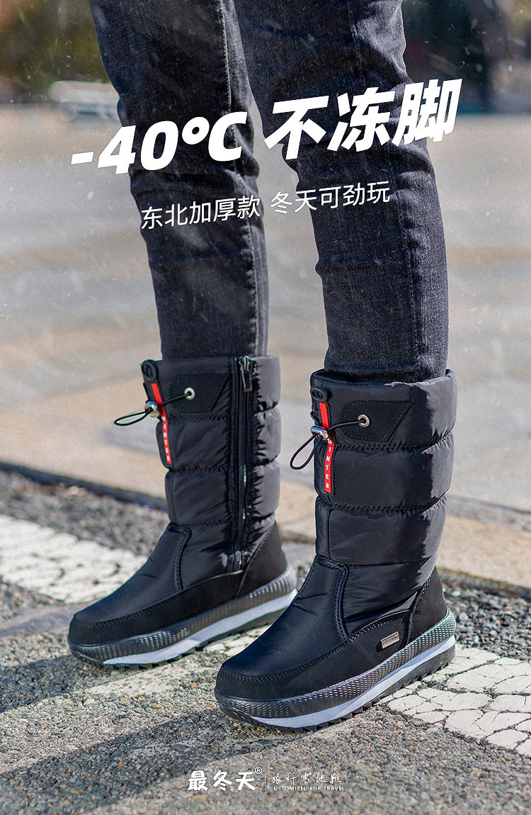 Утепленные сапоги, удерживающие тепло нескользящие черные ботинки с молнией, большой размер