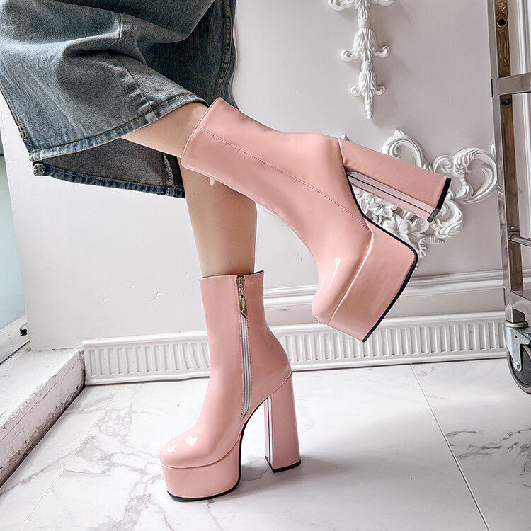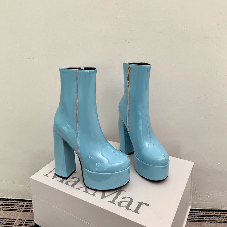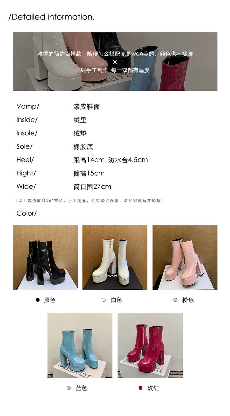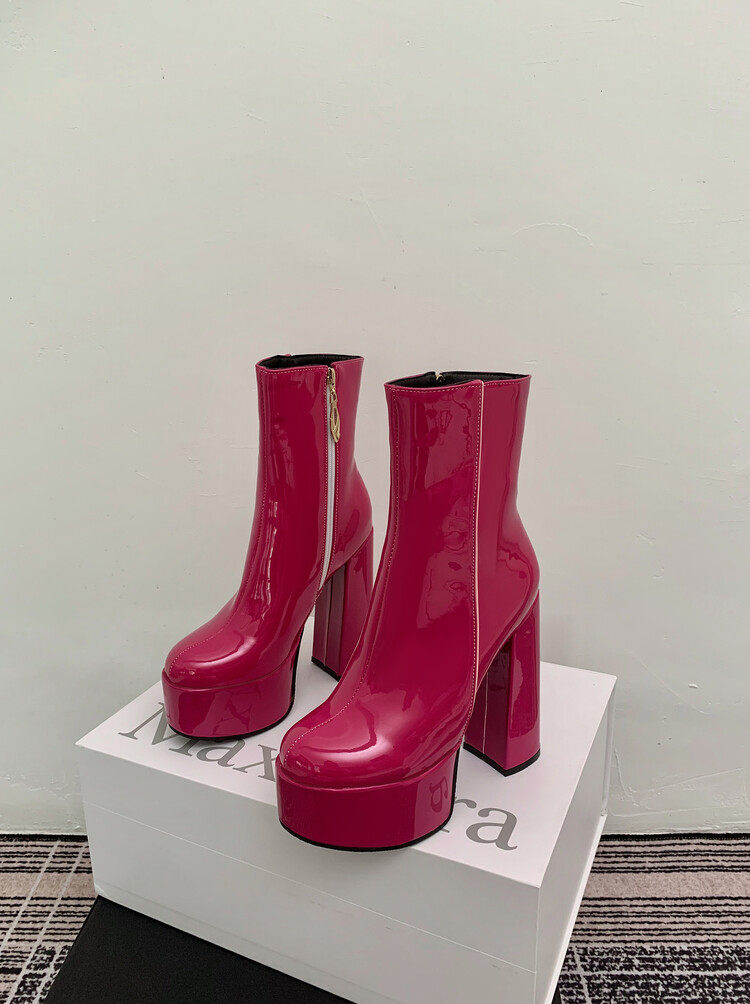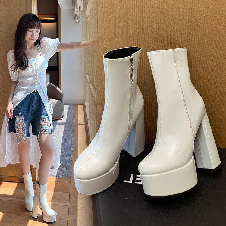 Martens, демисезонные глянцевые короткие сапоги, черные универсальные туфли на высоком каблуке