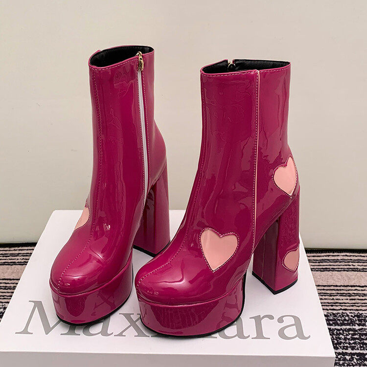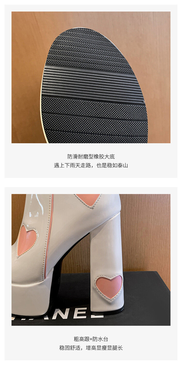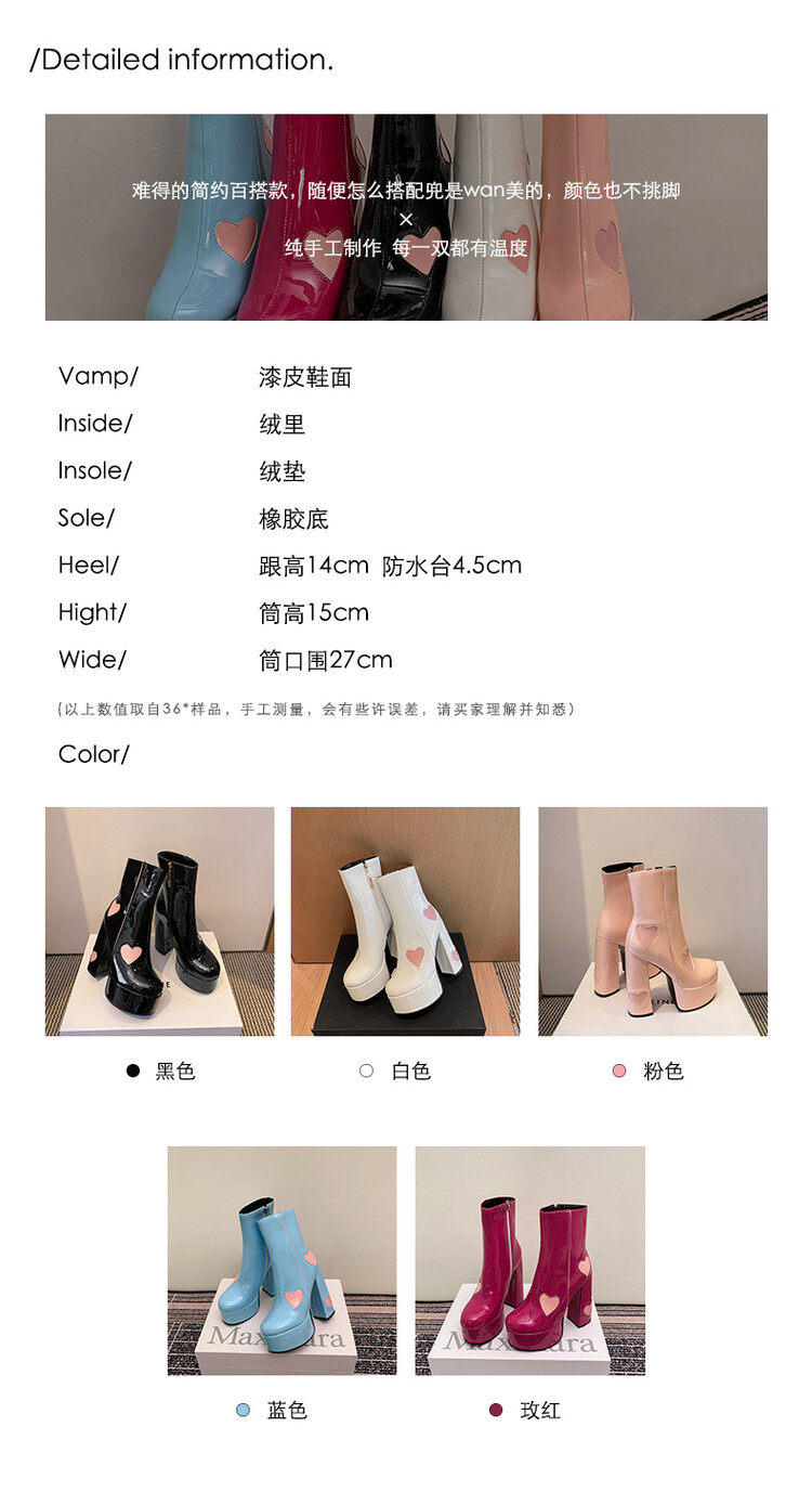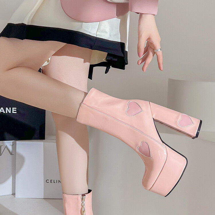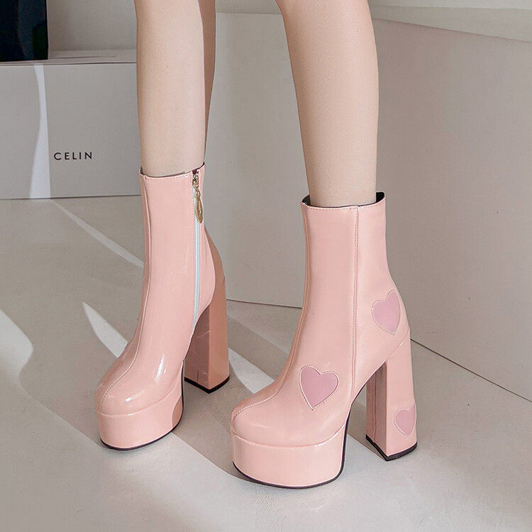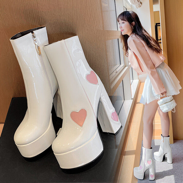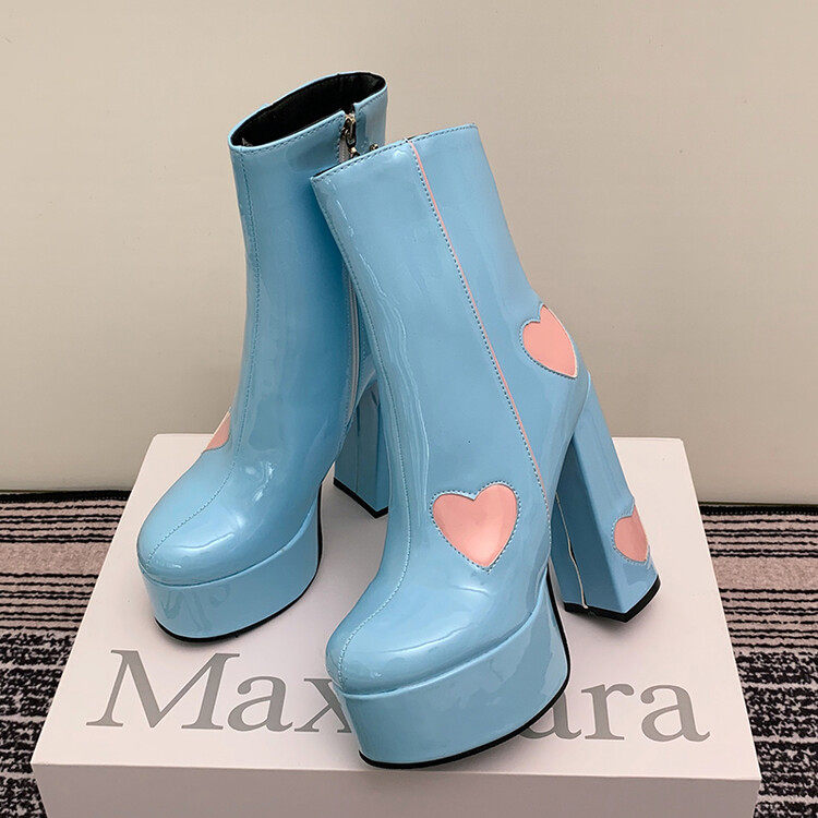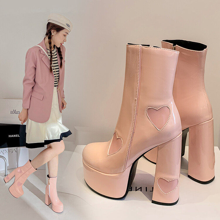 Сексуальные короткие сапоги на очень высоком каблуке на толстом каблуке, непромокаемые туфли на платформе, 14 см, светло-голубые розовые ботинки martin в форме сердца