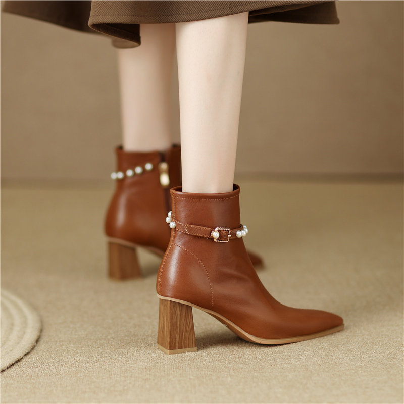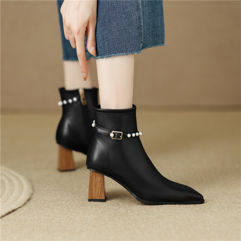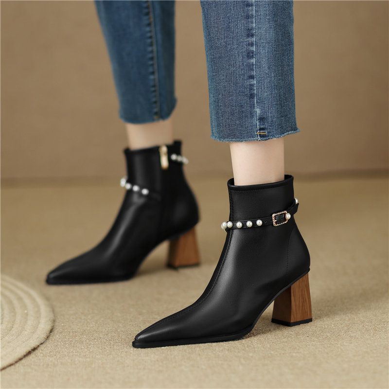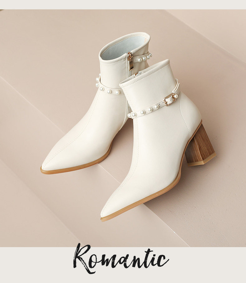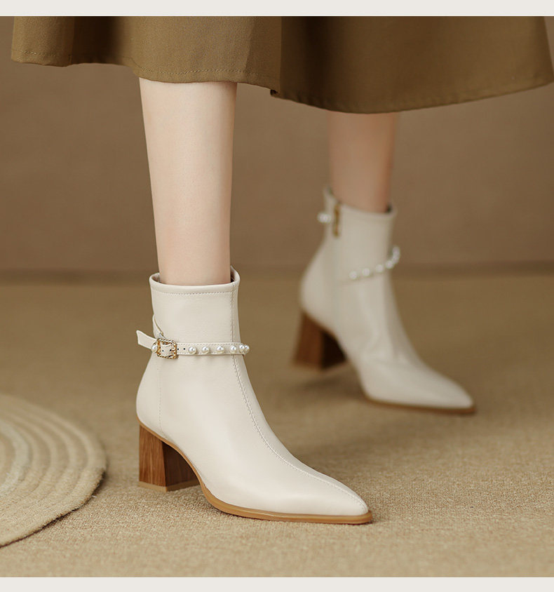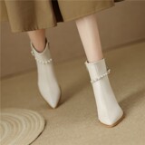 Белые элегантные короткие сапоги с заостренным носом, подходит с юбкой на высоком каблуке, осенние, французский стиль