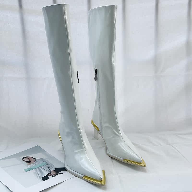Металлические высокие высокие сапоги с заостренным носом, европейский стиль, коллекция 2022, осенние