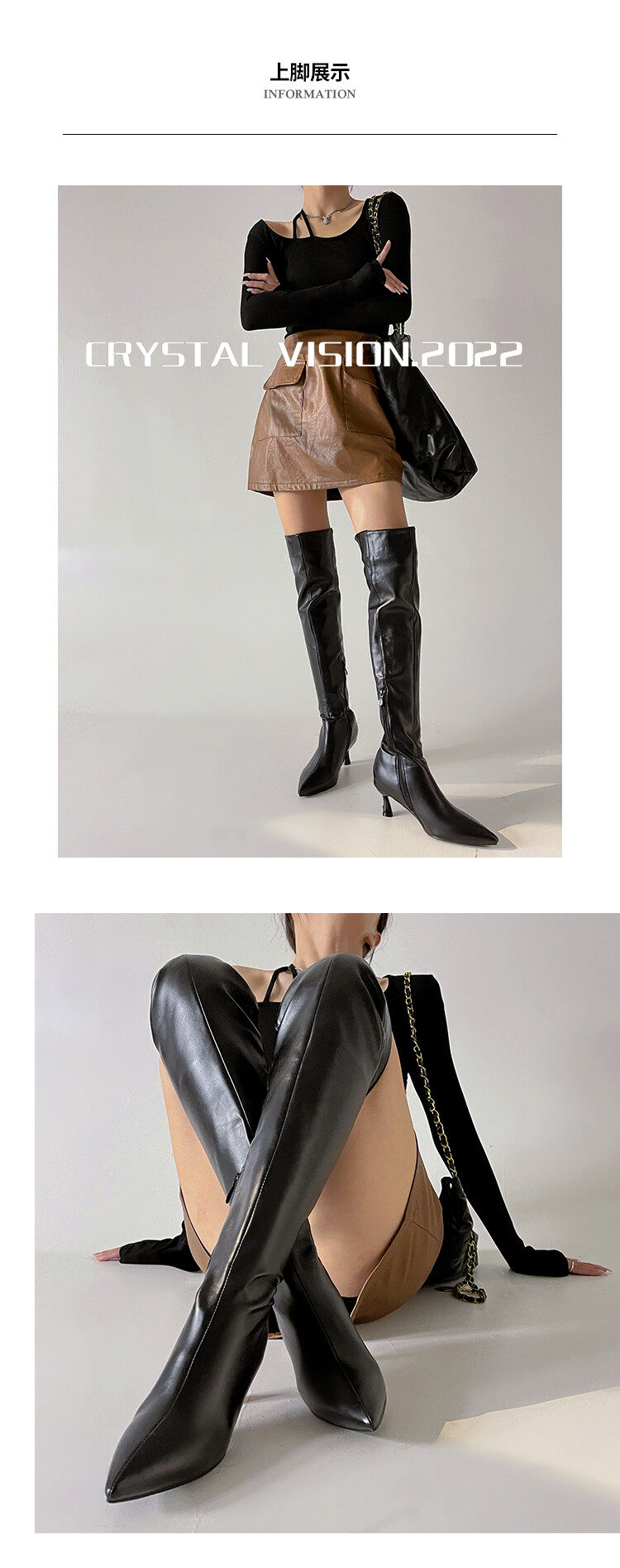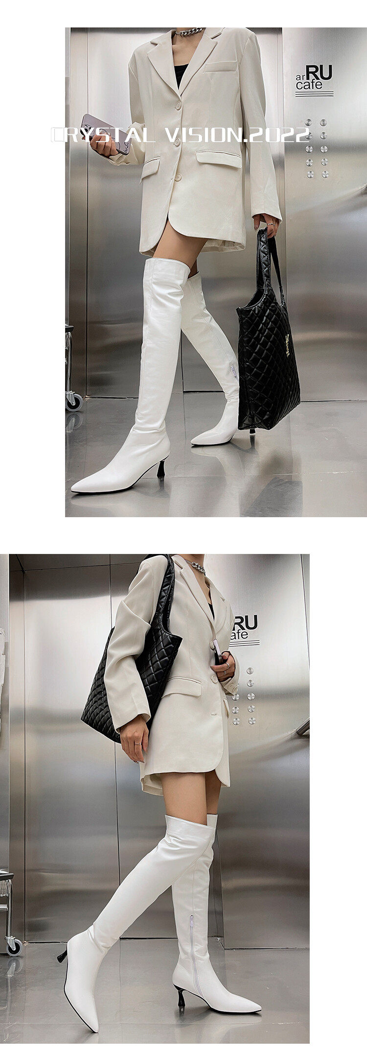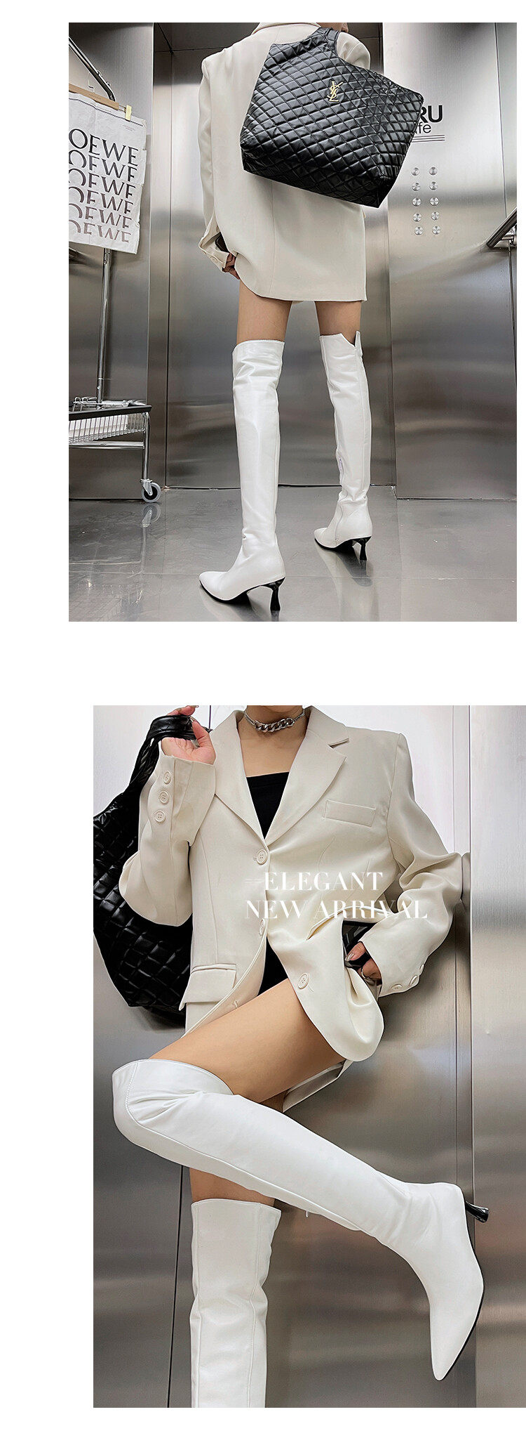 [显瘦白色过膝靴欧美尖头中跟长靴子白色长筒靴大码44 45 46 47 48]