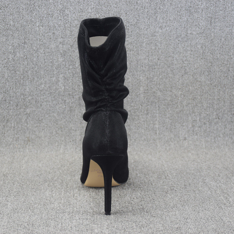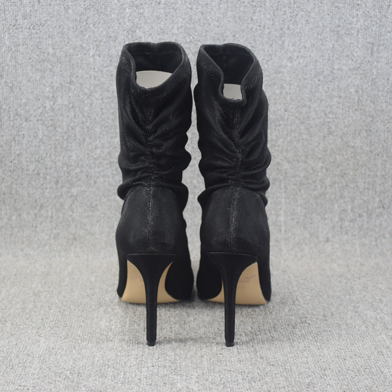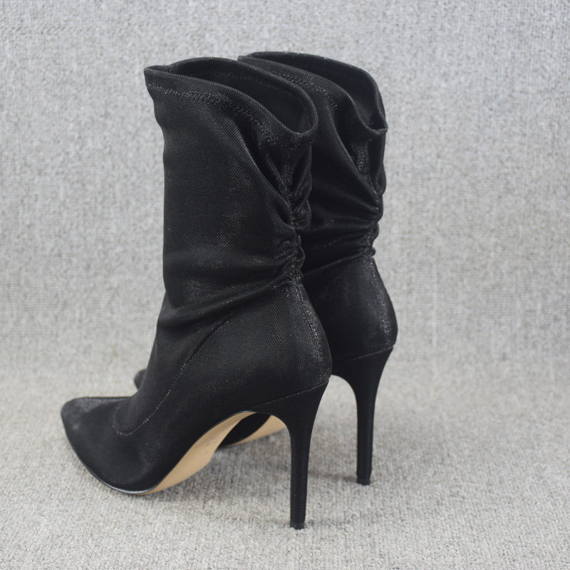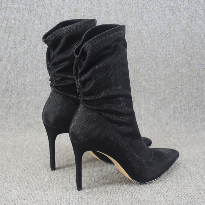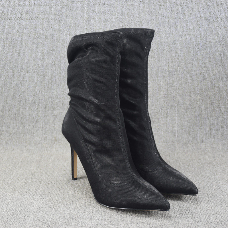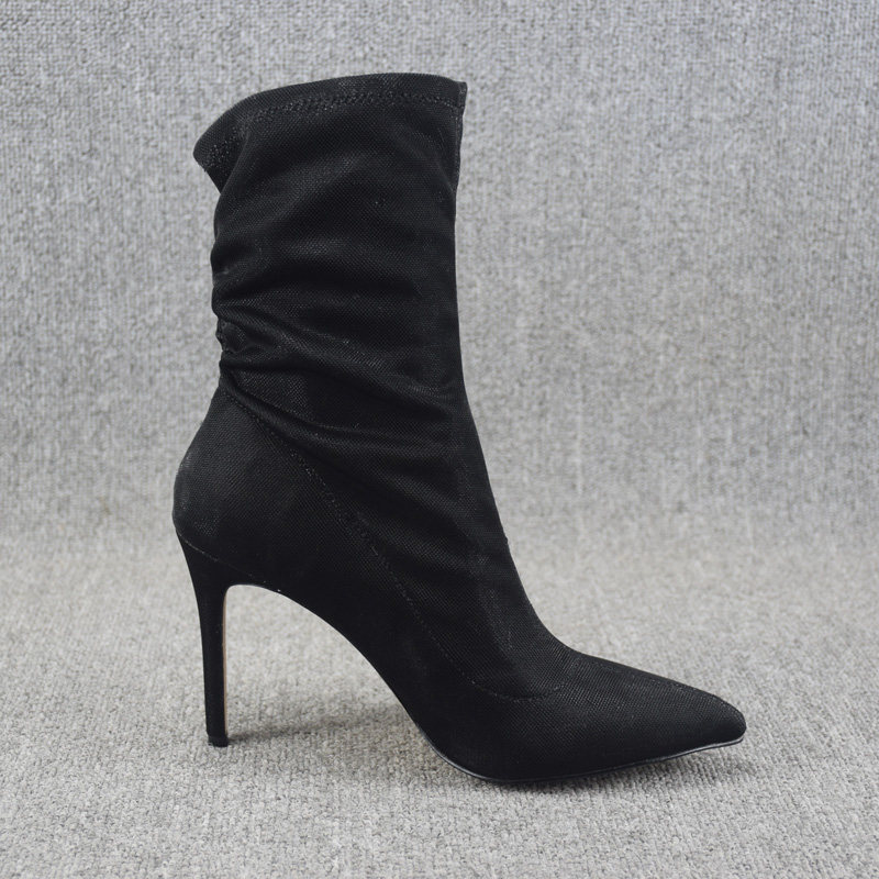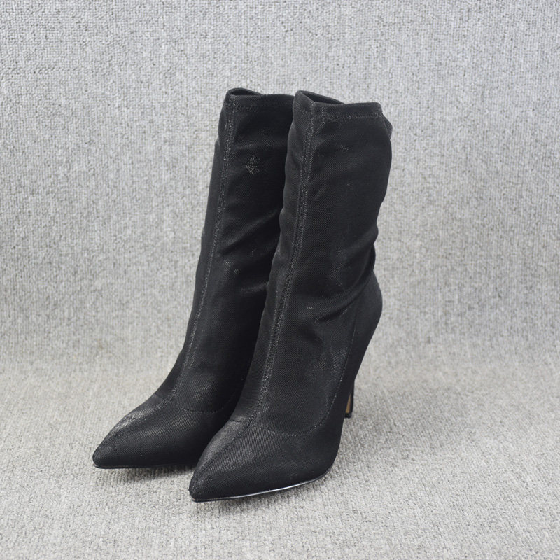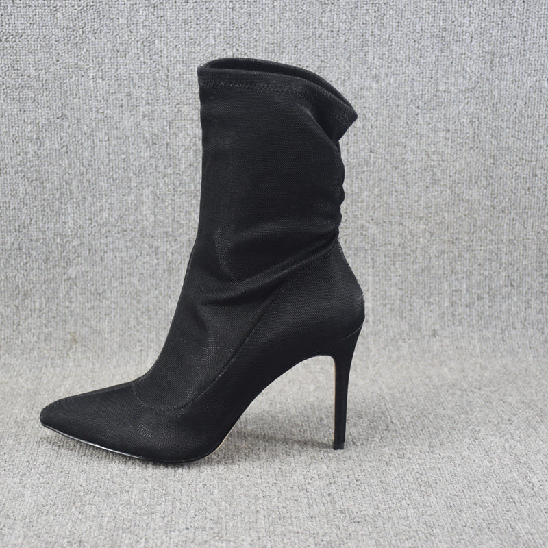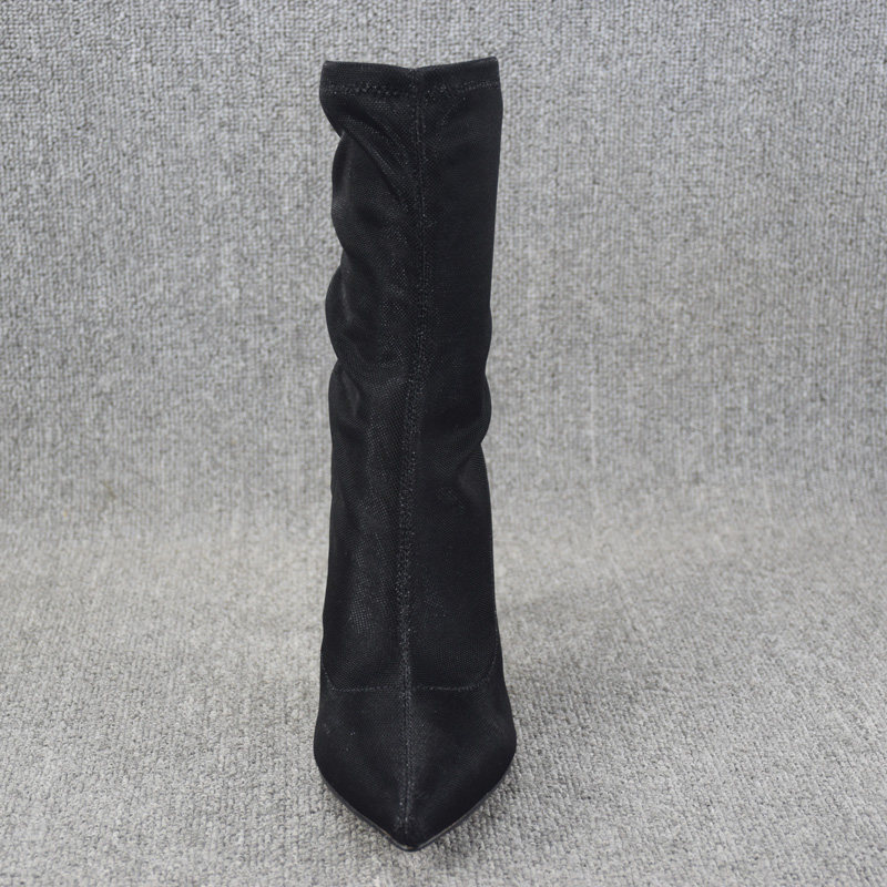 Осенние ботинки, летние короткие сапоги с заостренным носом на высоком каблуке, эластичные гольфы, по фигуре, средней длины