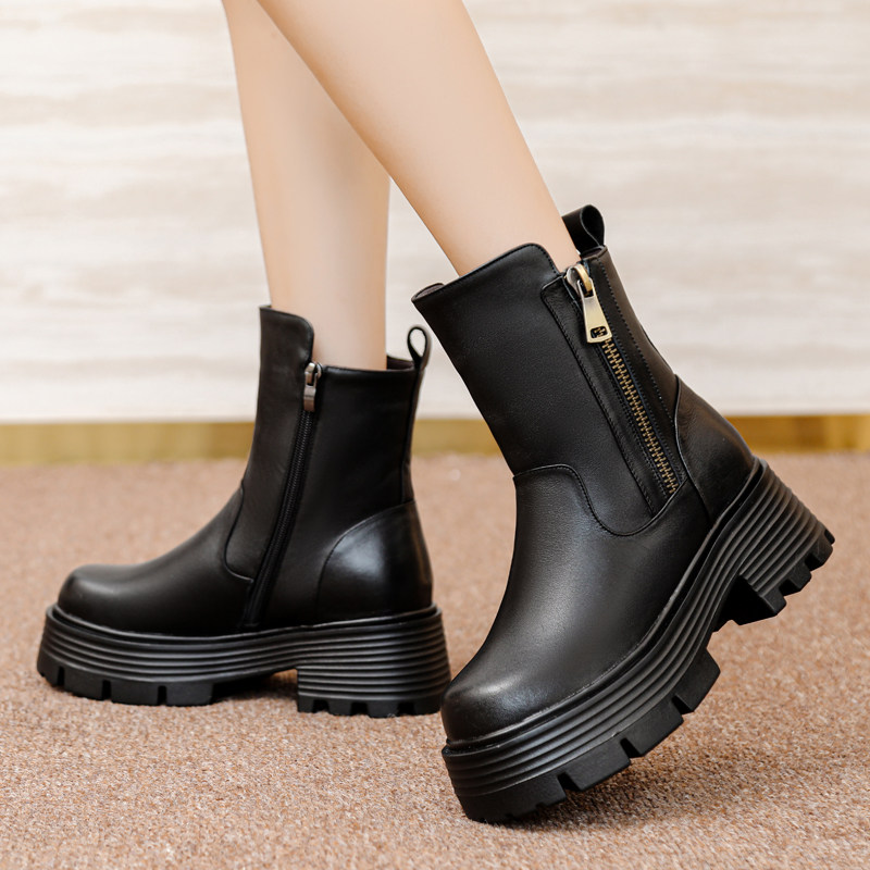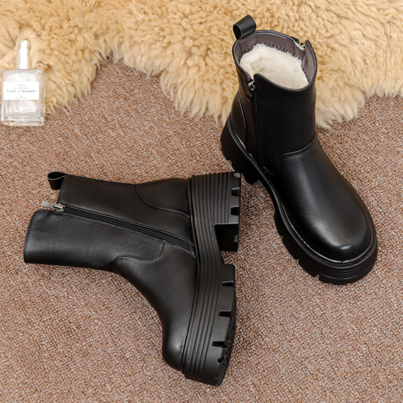 Высокие зимние короткие сапоги на платформе для матери, из натуральной кожи