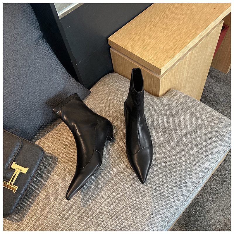 Демисезонные черные короткие сапоги с заостренным носом, в корейском стиле, по фигуре