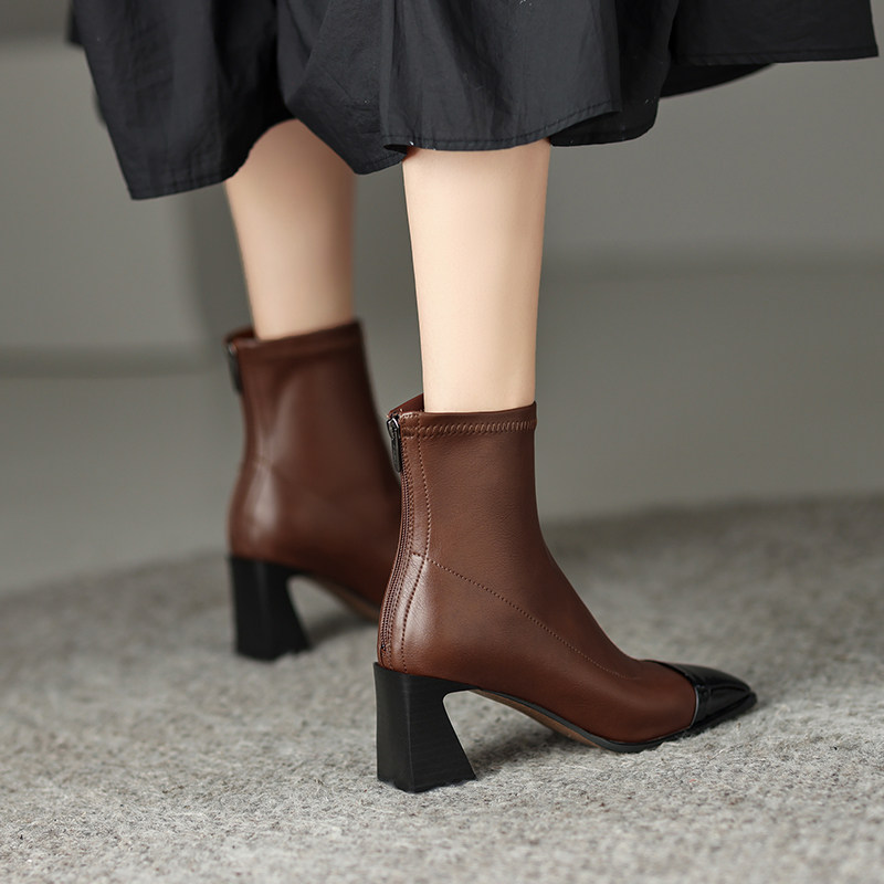 Демисезонные универсальные короткие сапоги на высоком каблуке, по фигуре, в стиле Шанель, городской стиль