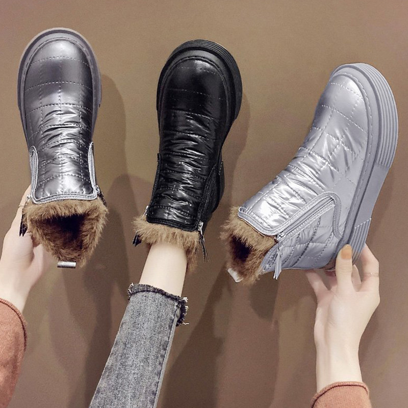 Флисовые зимние короткие сапоги с пухом, коллекция 2022