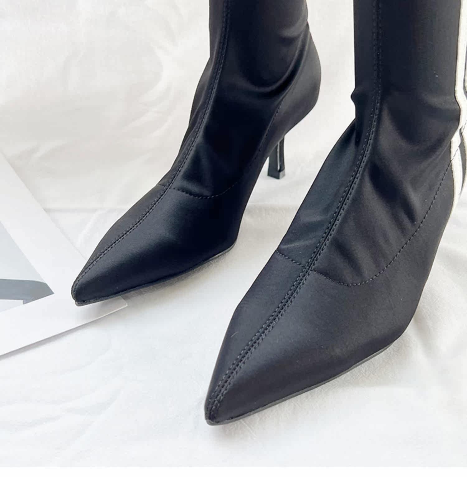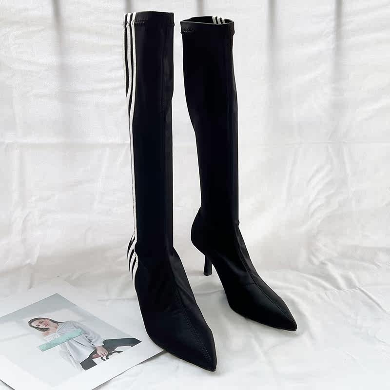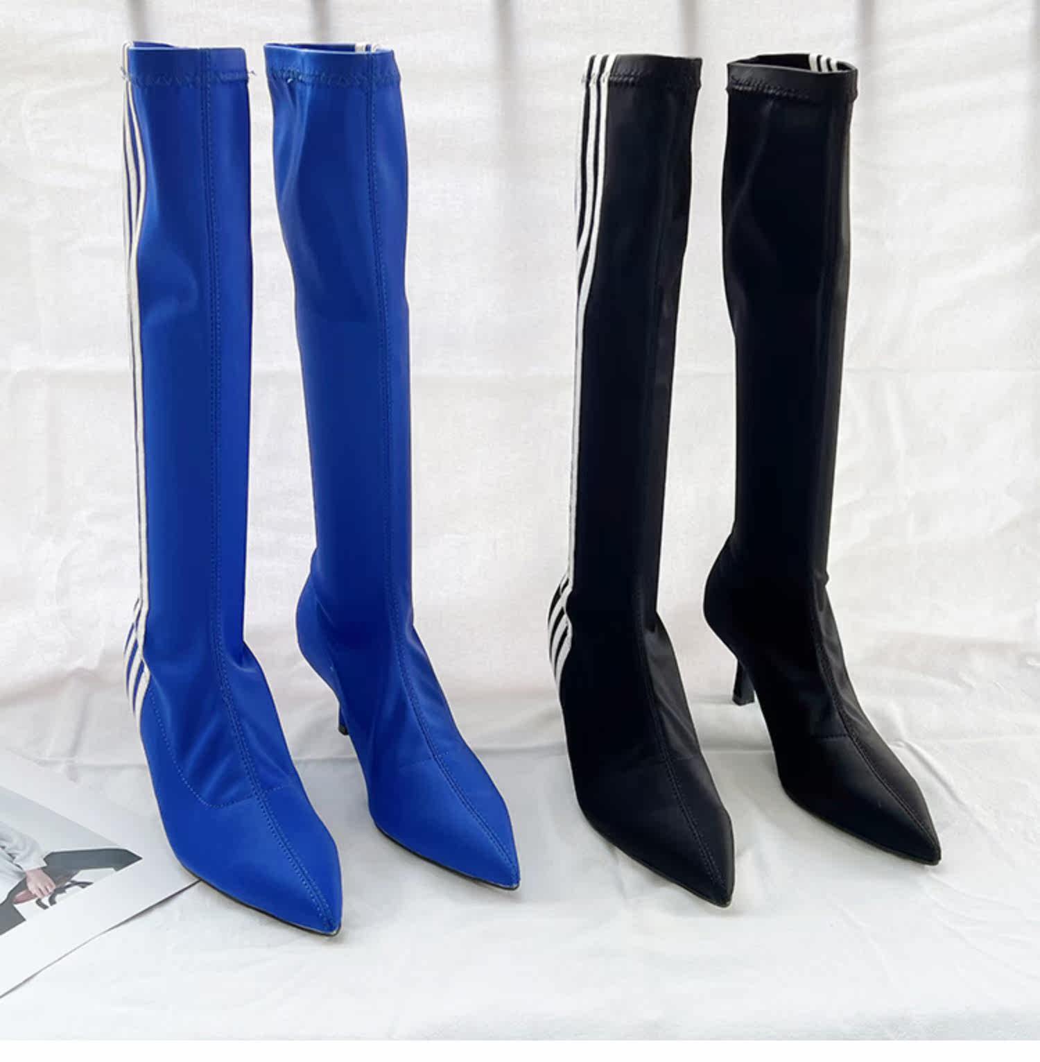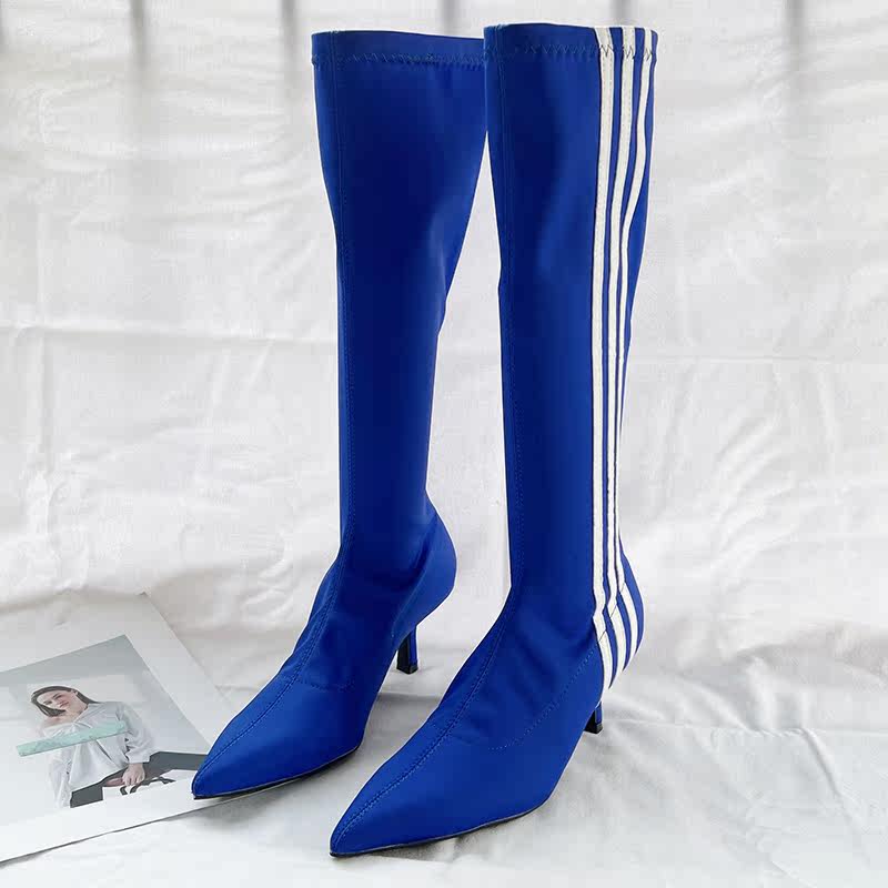 Эластичные высокие синие высокие сапоги с заостренным носом, популярно в интернете, 2023, осенние