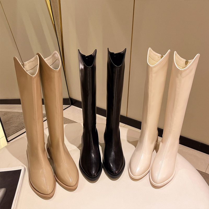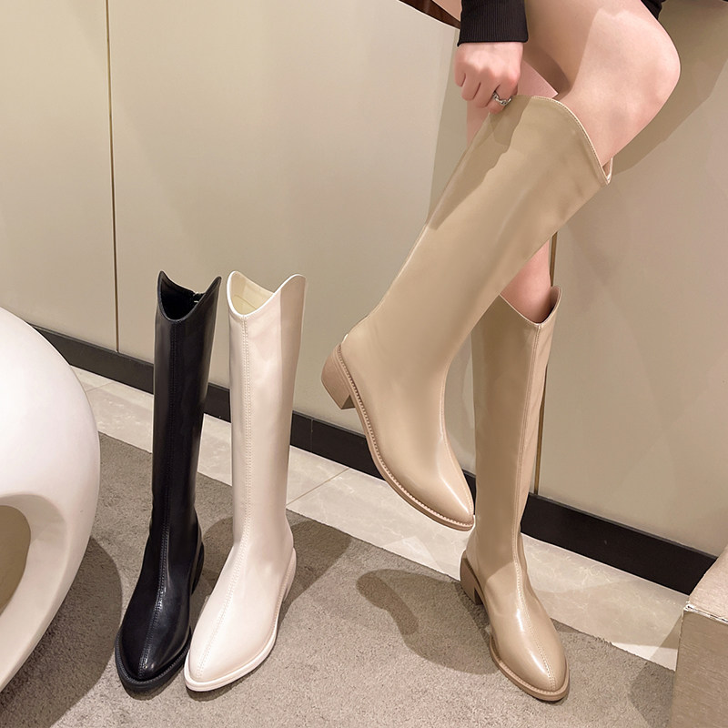 Весенние флисовые высокие сапоги с заостренным носом, ботинки, по фигуре