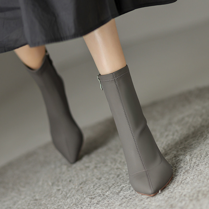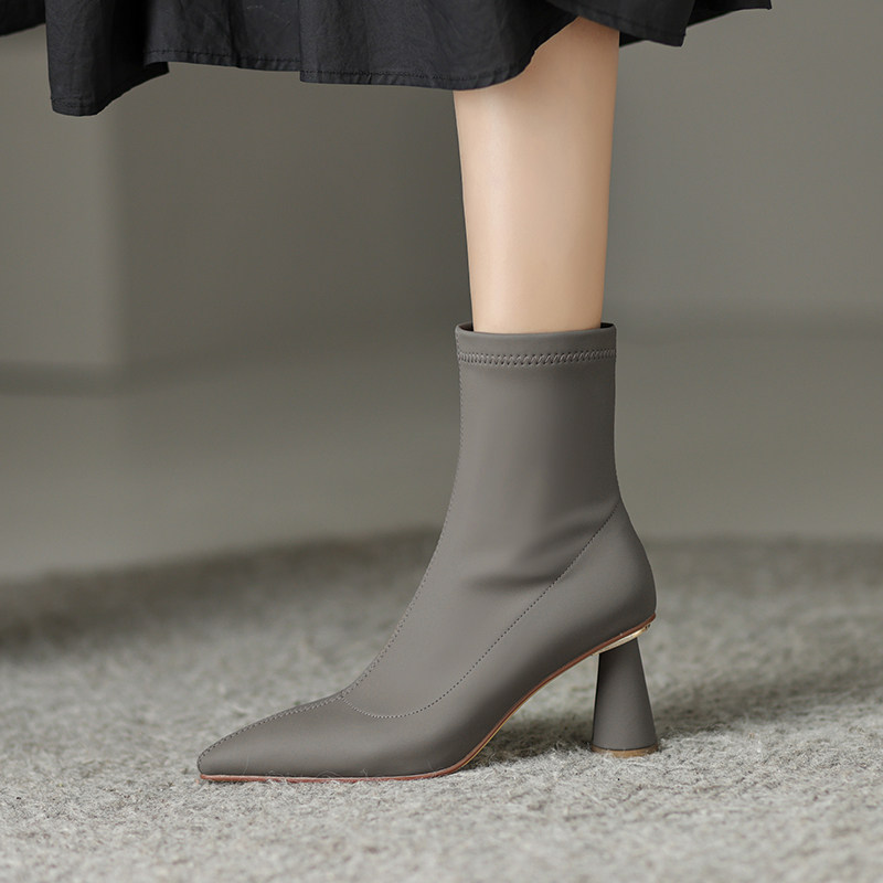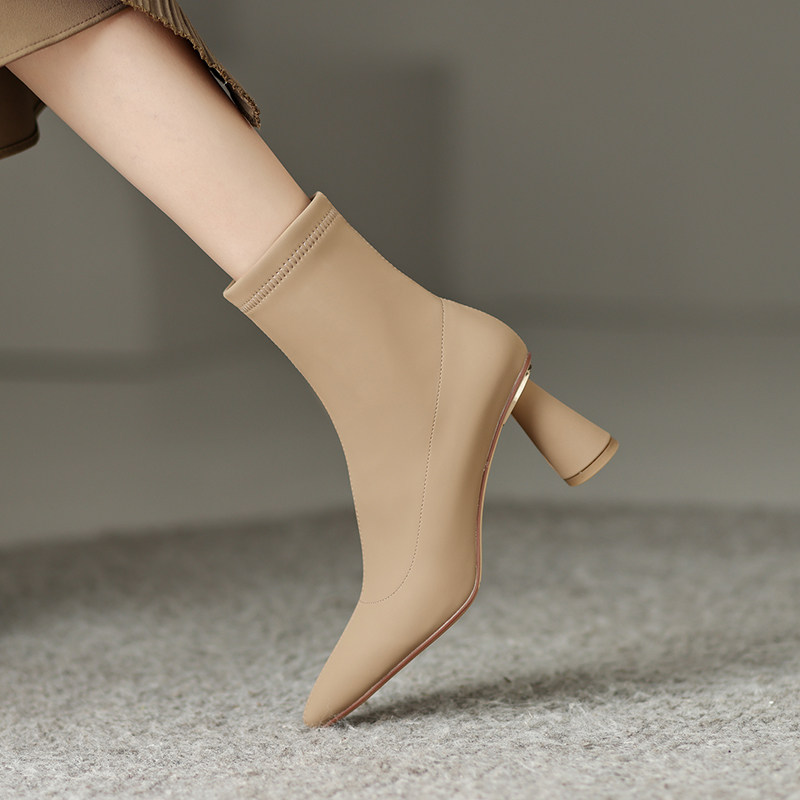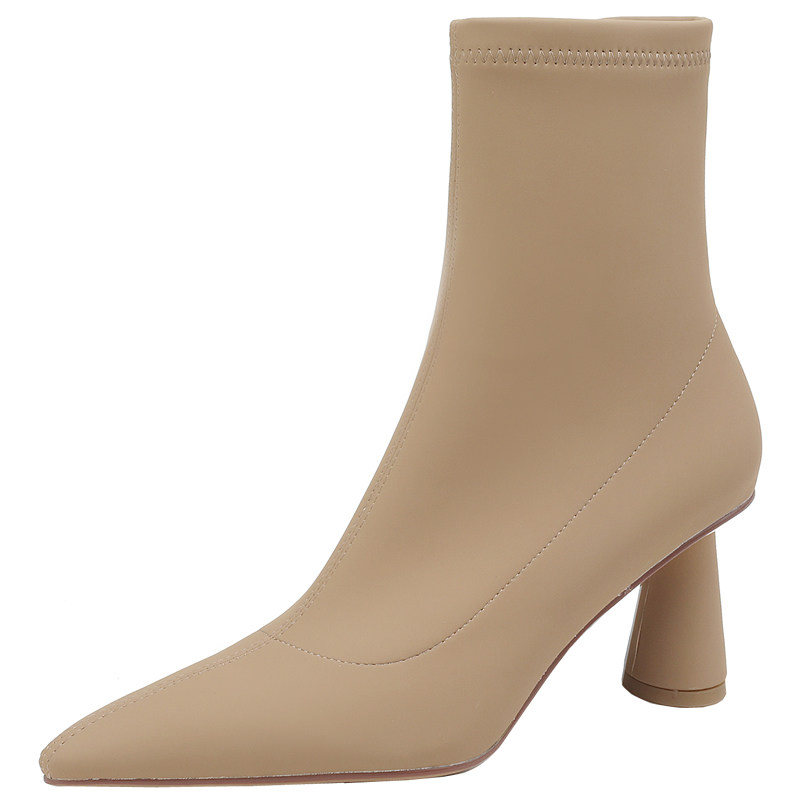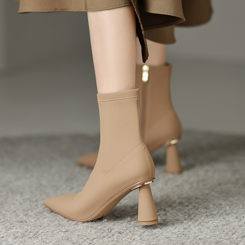 Martens, абрикосовые зимние короткие сапоги с заостренным носом на высоком каблуке, ботинки, коллекция 2022, осенние, подходит для подростков