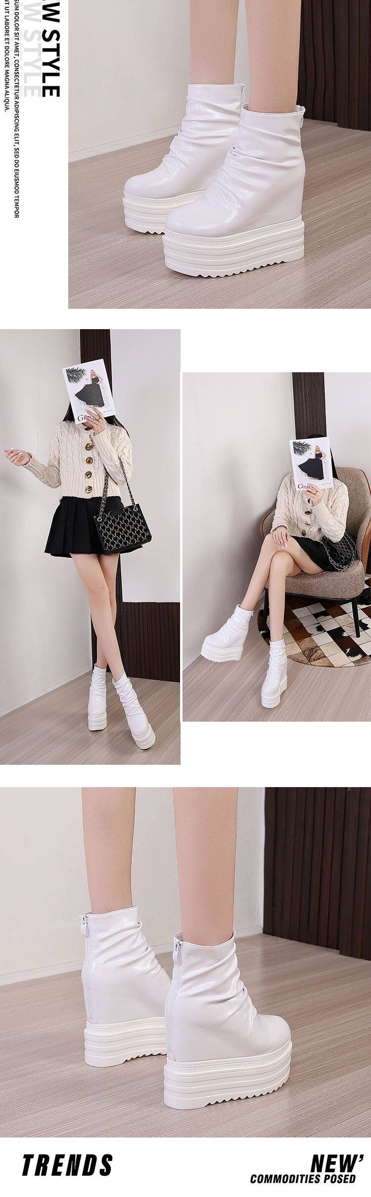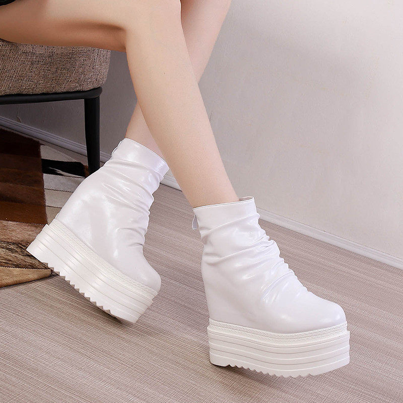 Римские туфли на платформе и танкетке 15 см, римские туфли на толстой подошве, женские короткие сапоги, увеличивающие внутреннюю высоту 16 см, повседневная женская обувь на высоком каблуке до небес