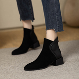 Матовые короткие сапоги с заостренным носом с молнией, универсальные челси, французский ретро стиль, из натуральной кожи
