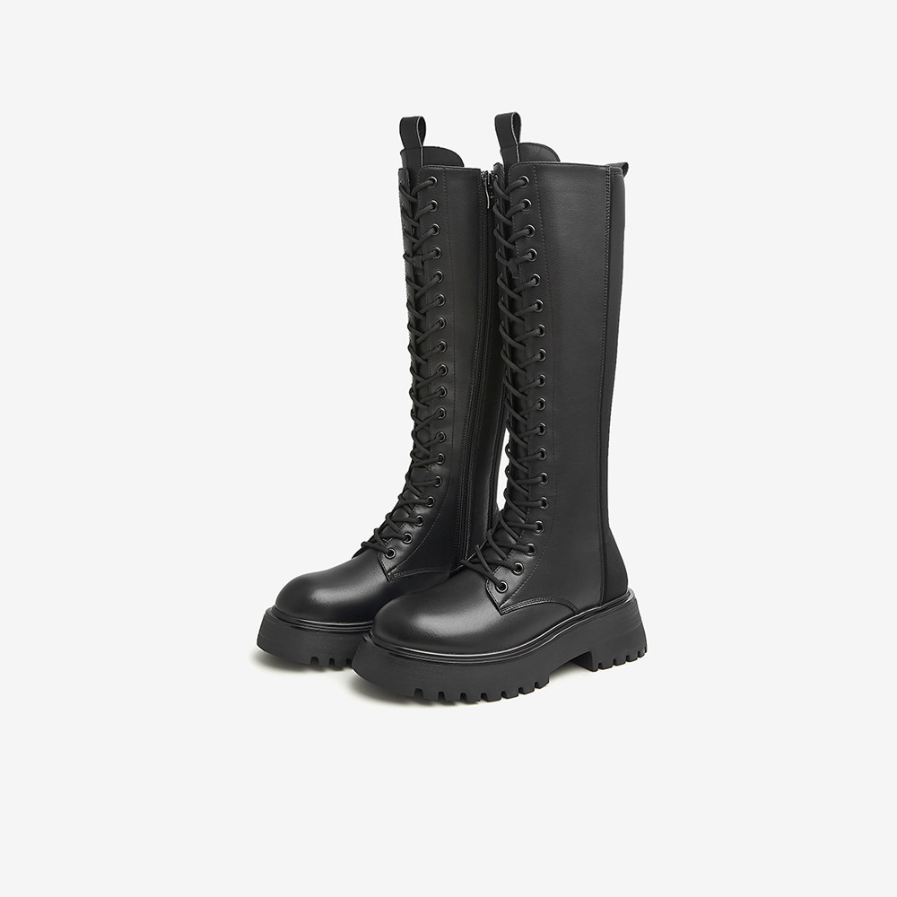 Демисезонный утепленный ремень на платформе, черные высокие сапоги, по фигуре