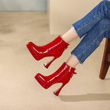 Martens, красные короткие сапоги на платформе, флисовые ботинки на высоком каблуке, коллекция 2022, из натуральной кожи