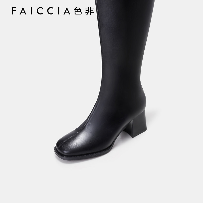 Цвет не-преумновой и зимней новой квадратной головки маленькие ботинки для черных высоких каблуков Толстые каблуки Женские тонкие ботинки D348
