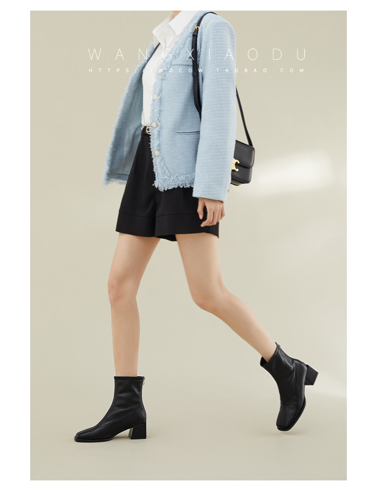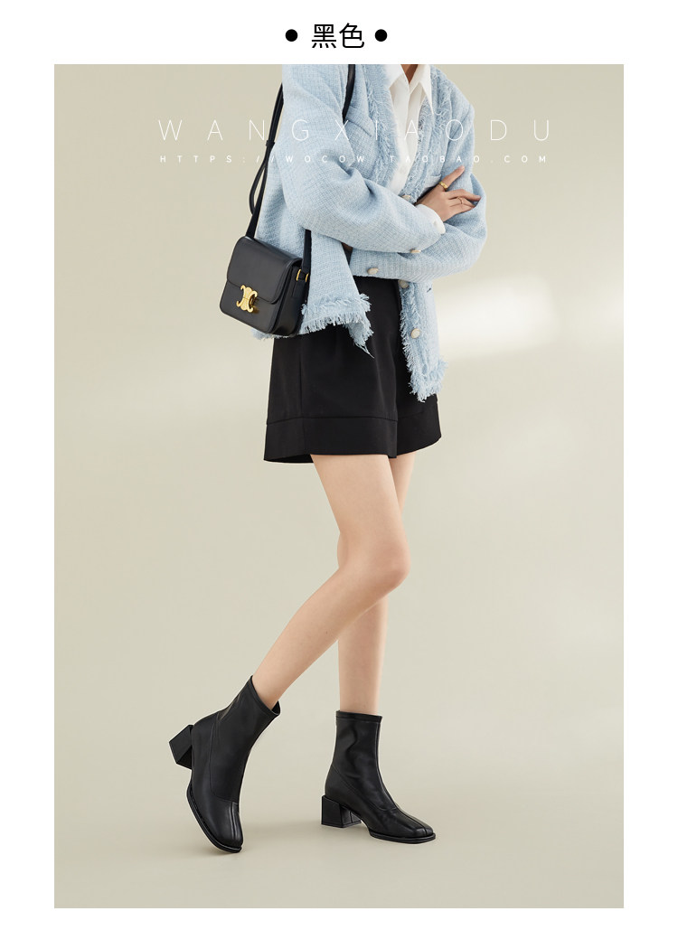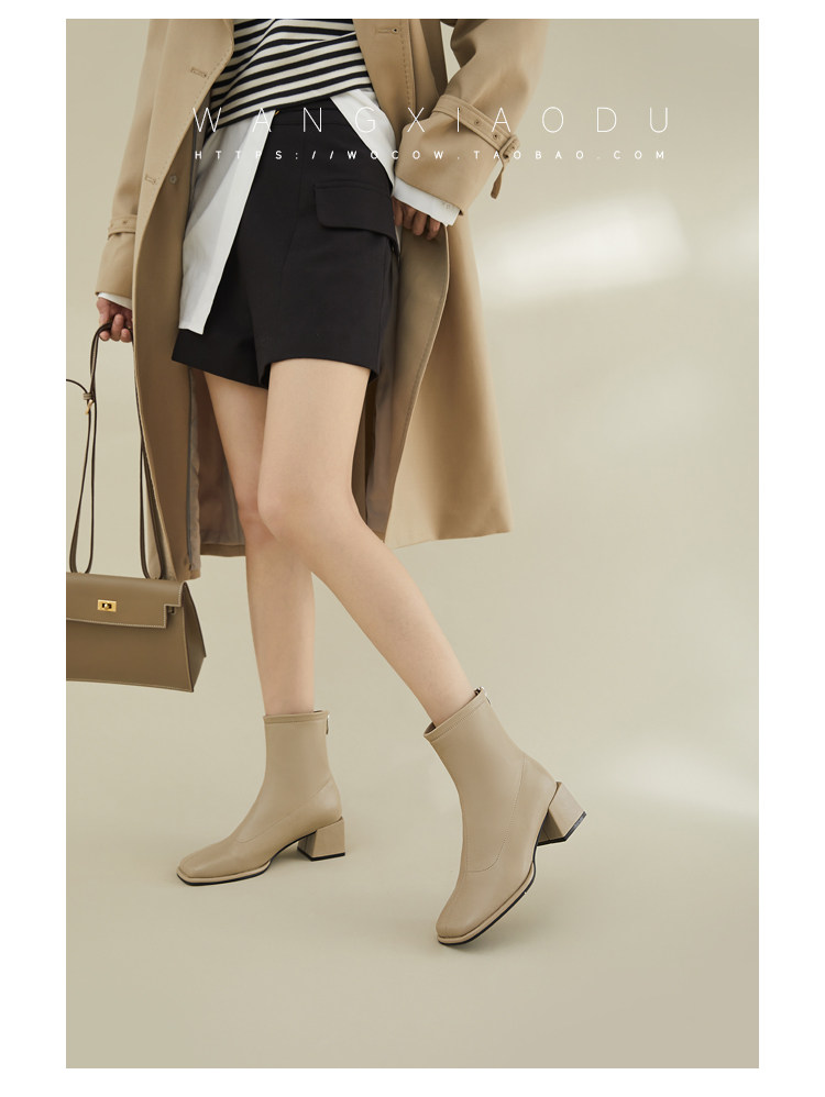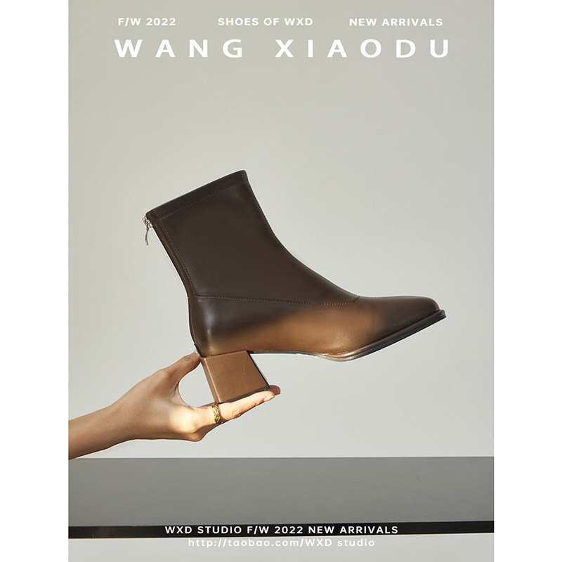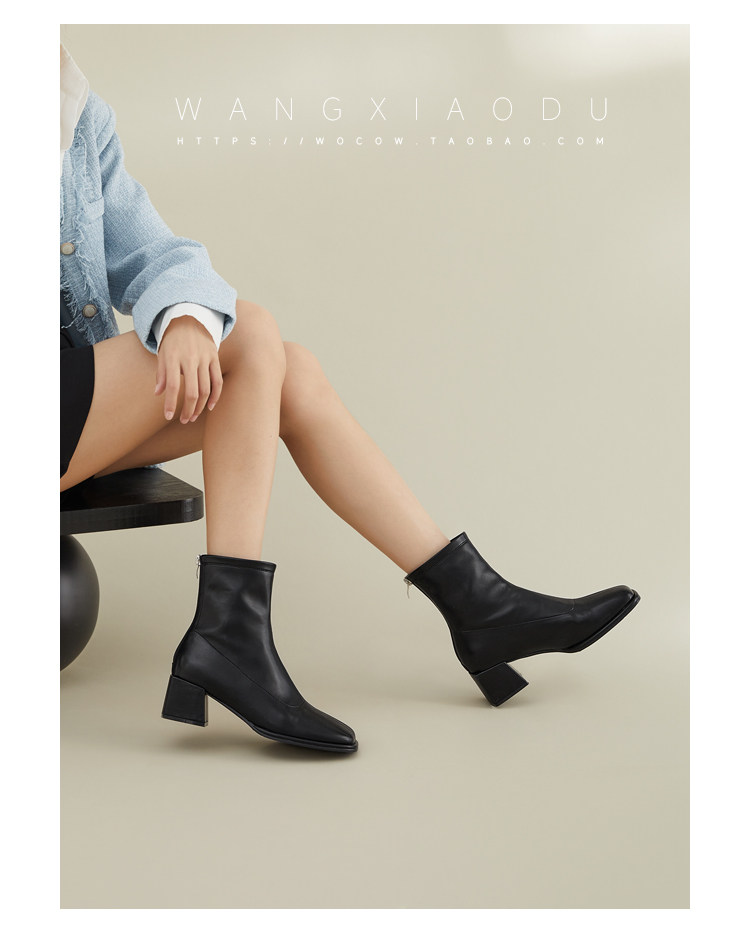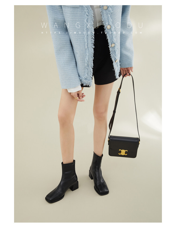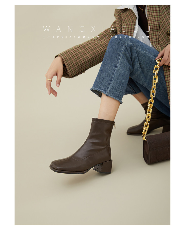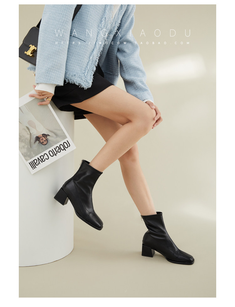 [Ван Сяси] Seoul Street ○ Эластичные тонкие ботинки женский квадратный новый стиль и голые ботинки одиночные ботинки женские сапоги с высокими высокими