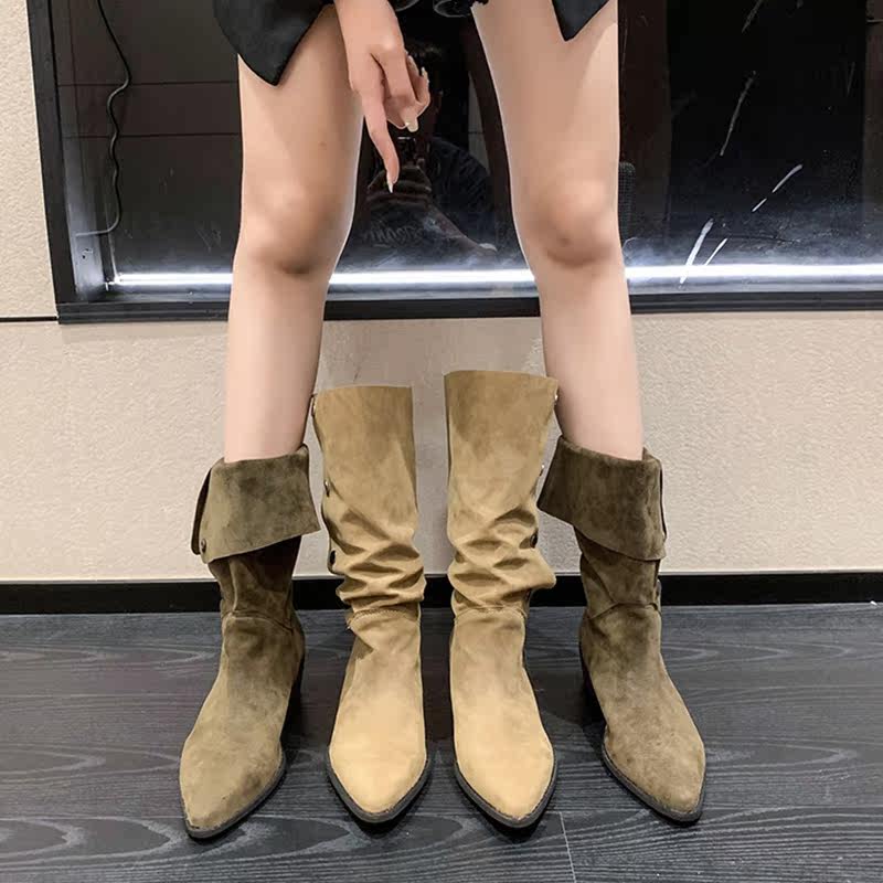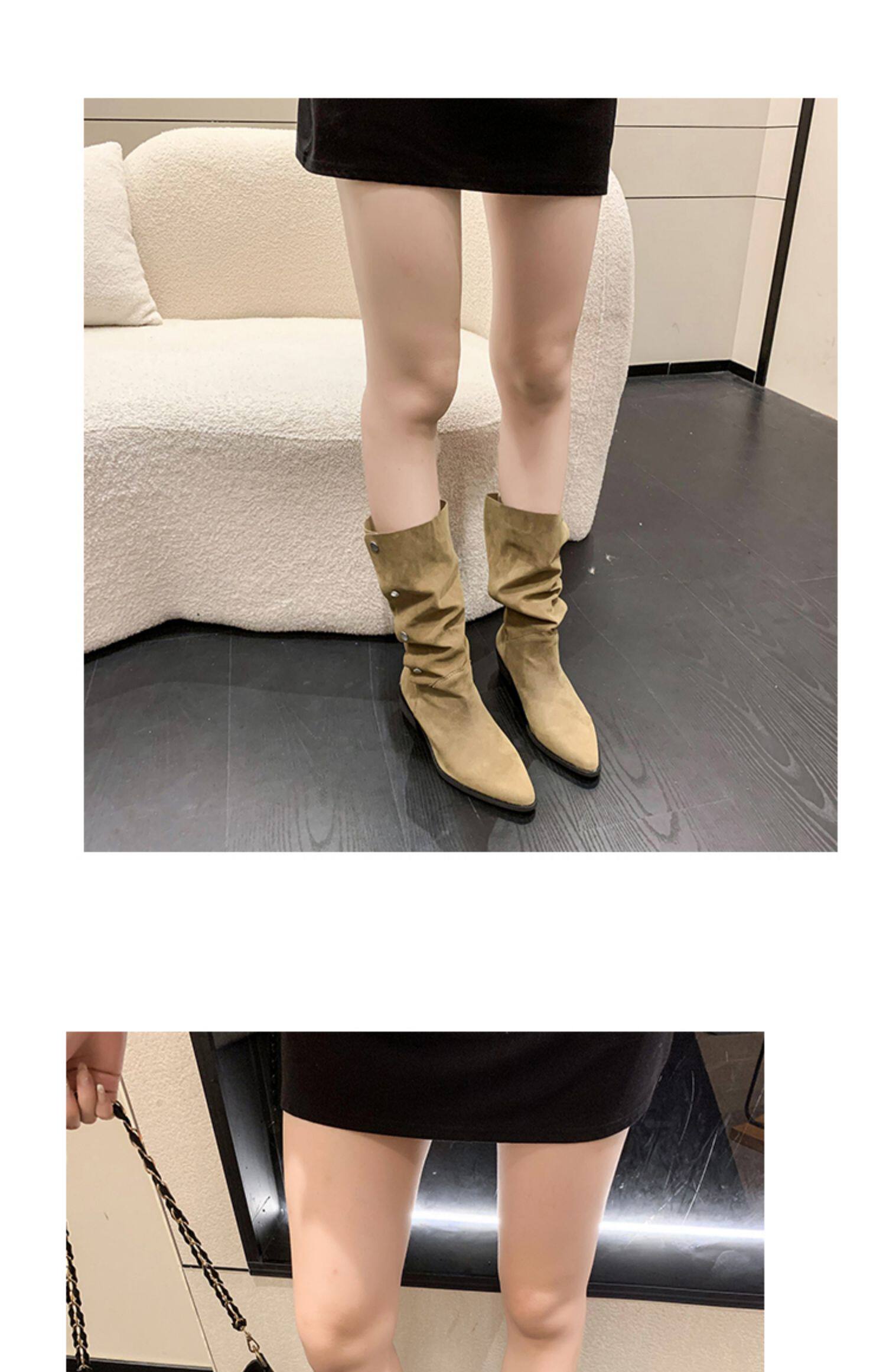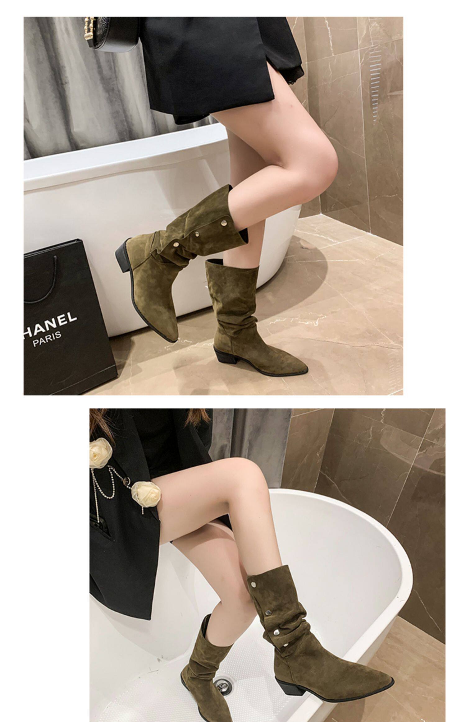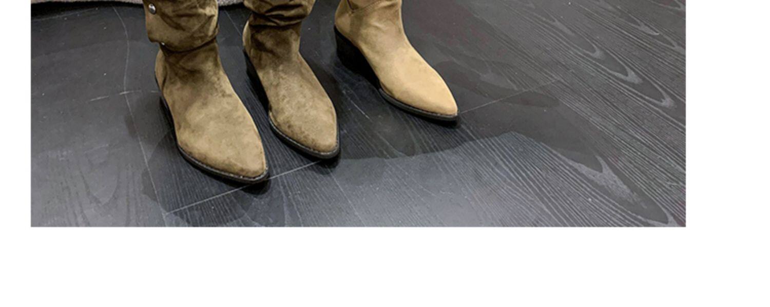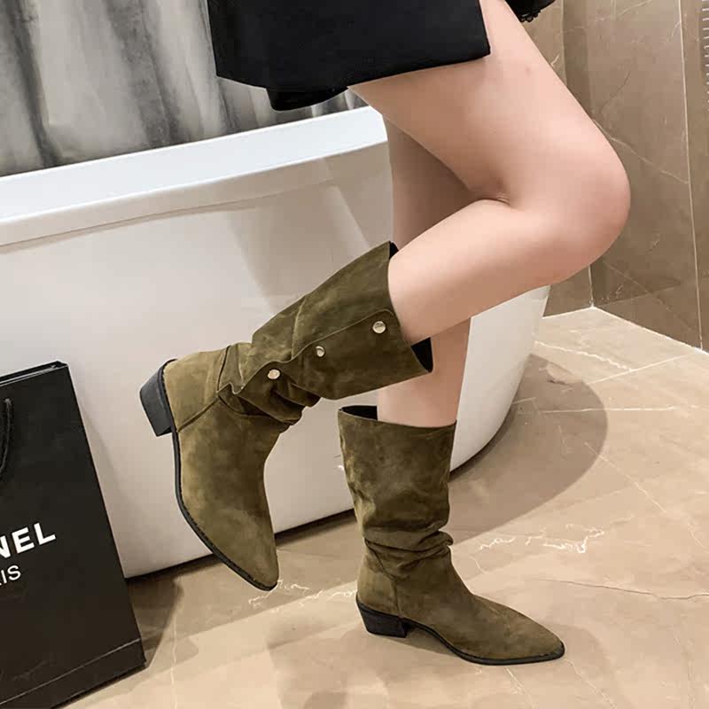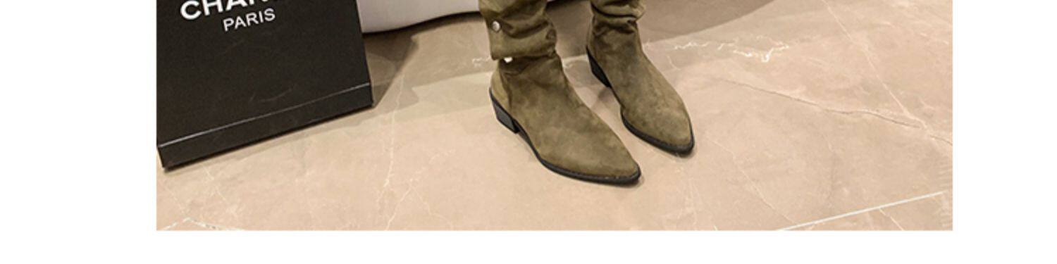 Хаки джинсовые короткие сапоги с заостренным носом, 2022, по фигуре, средней длины