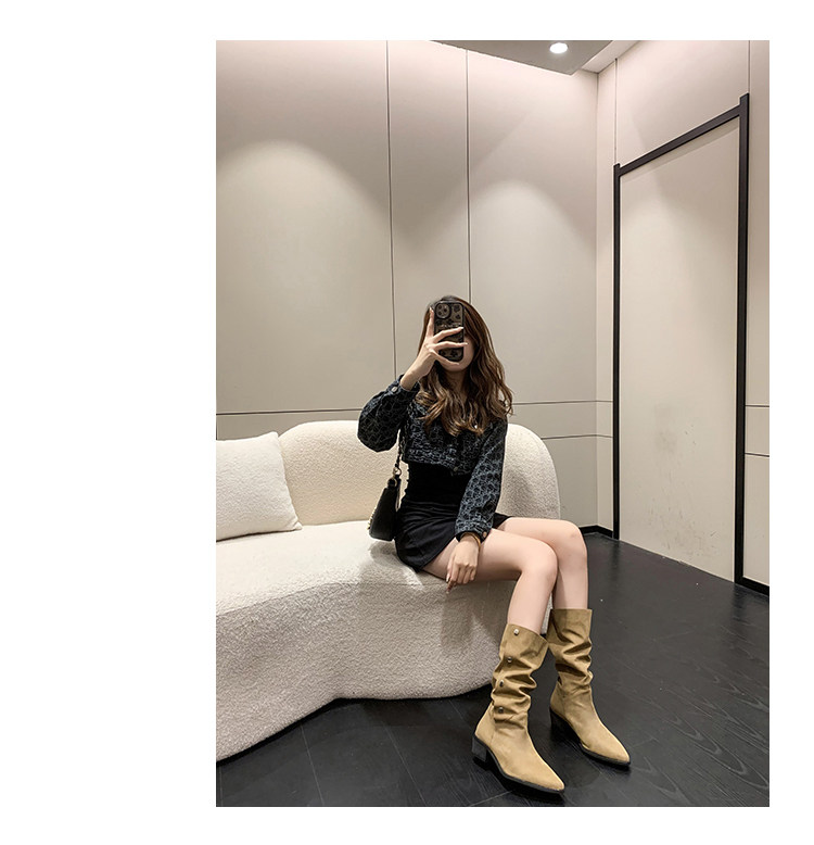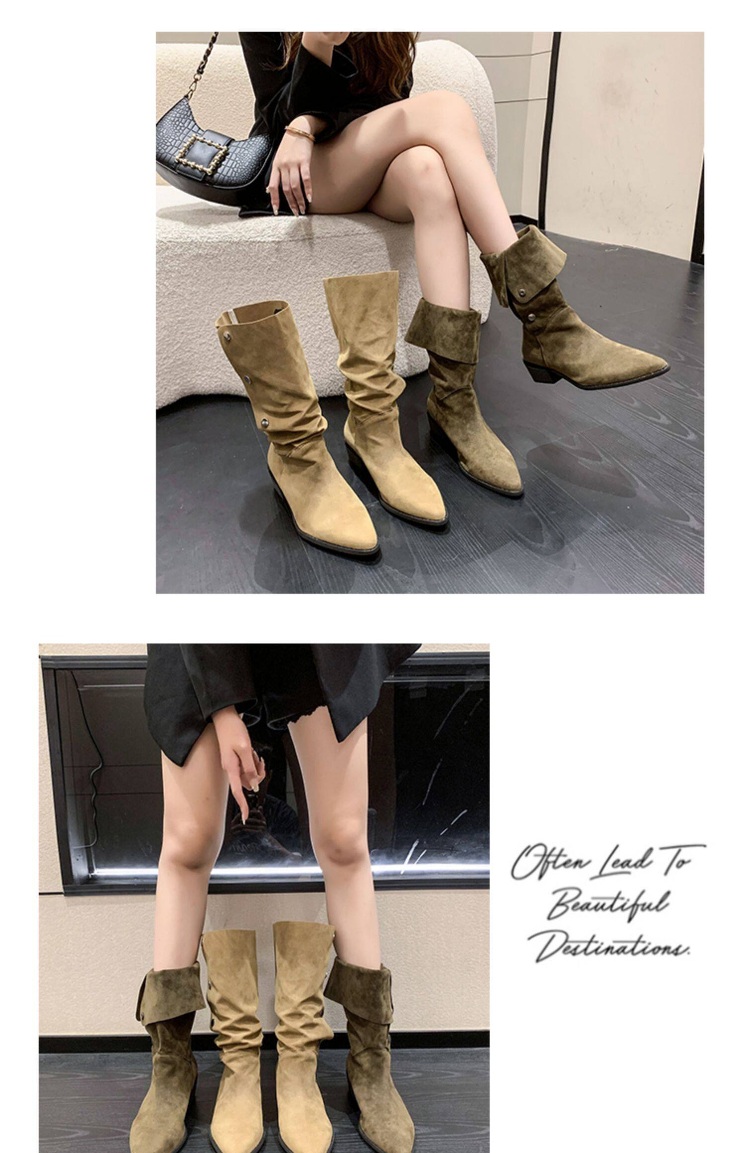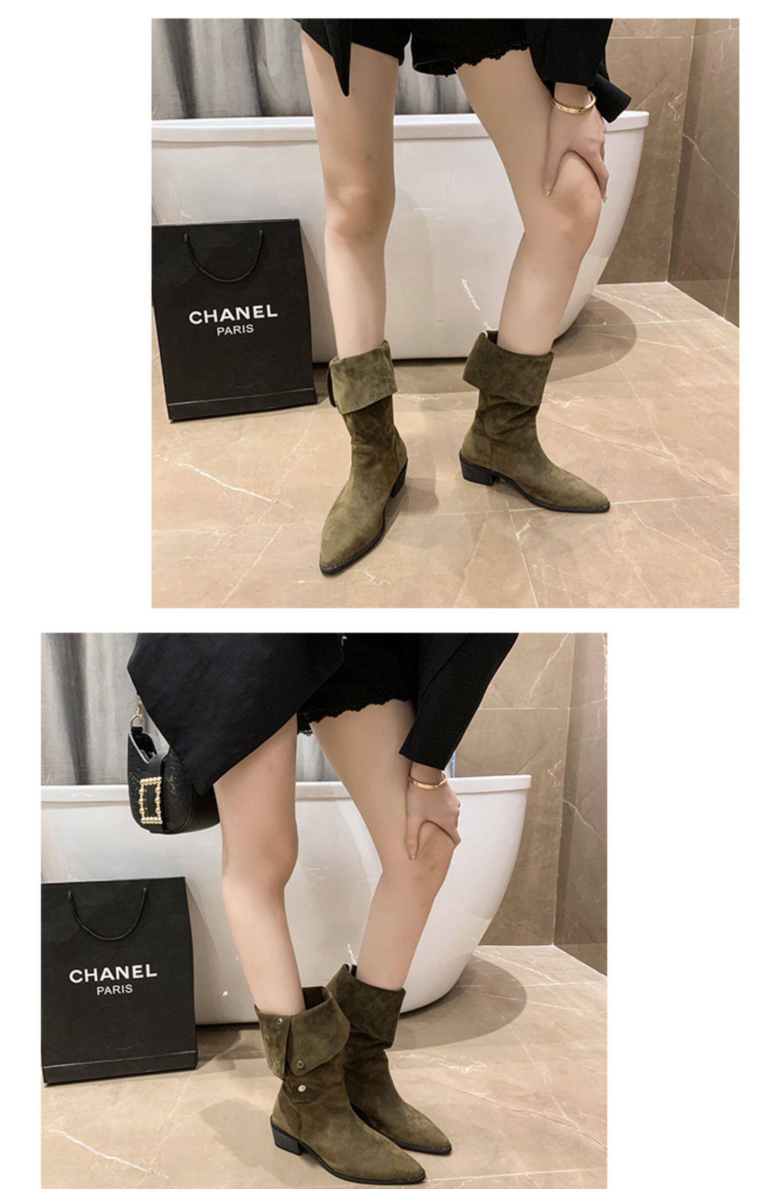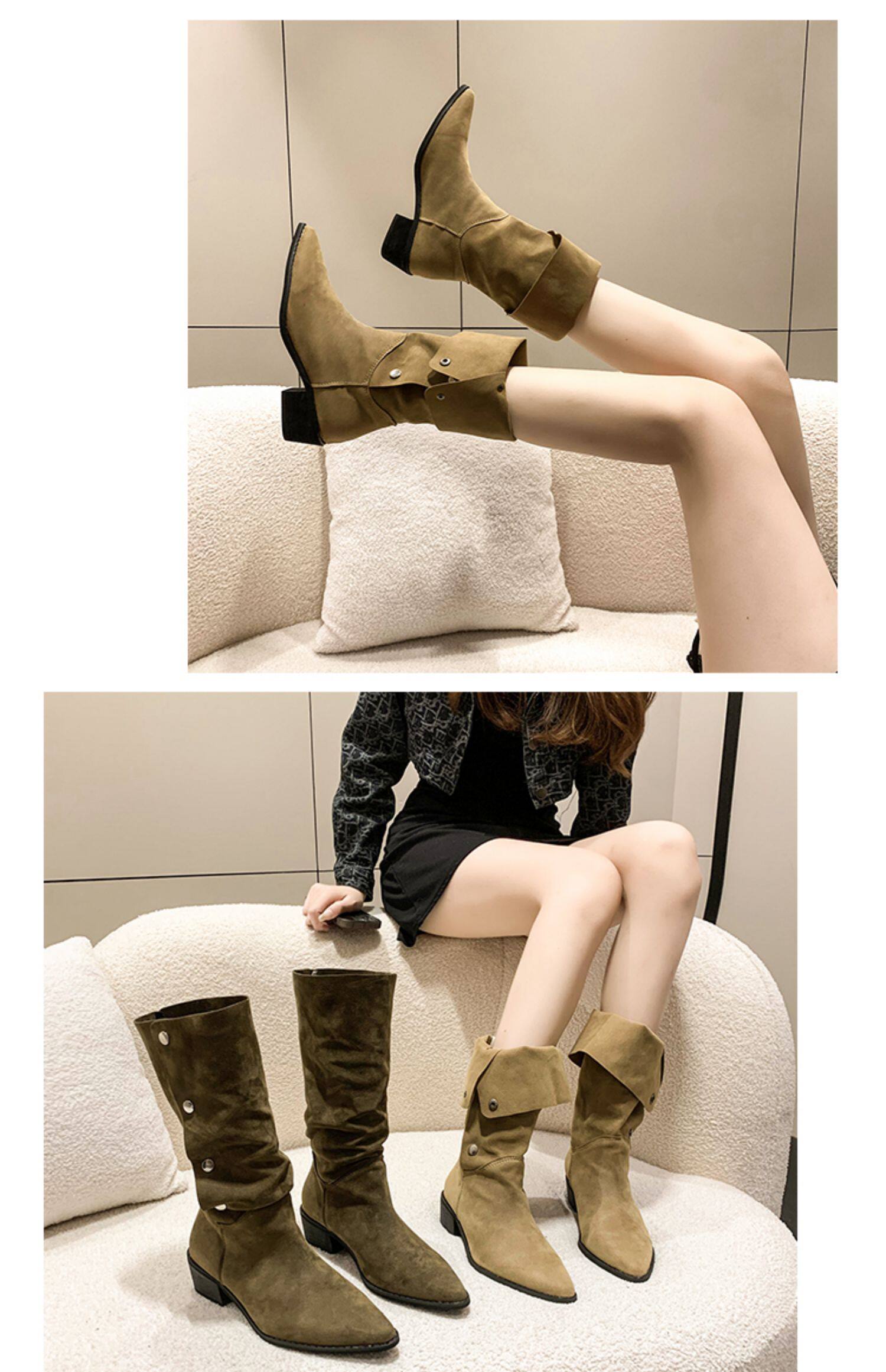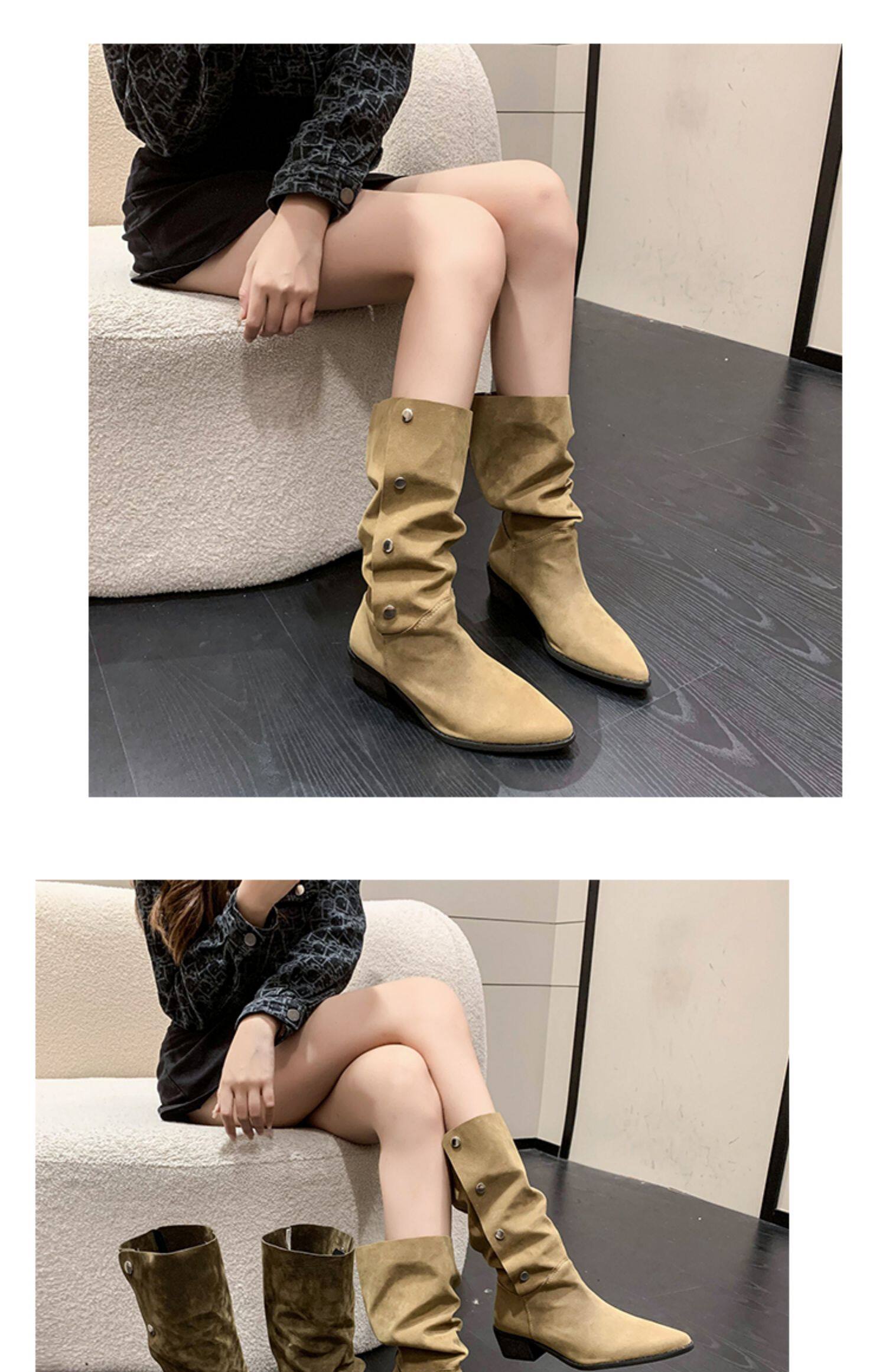 Хаки джинсовые короткие сапоги с заостренным носом, 2022, по фигуре, средней длины