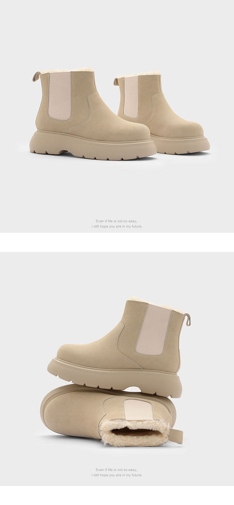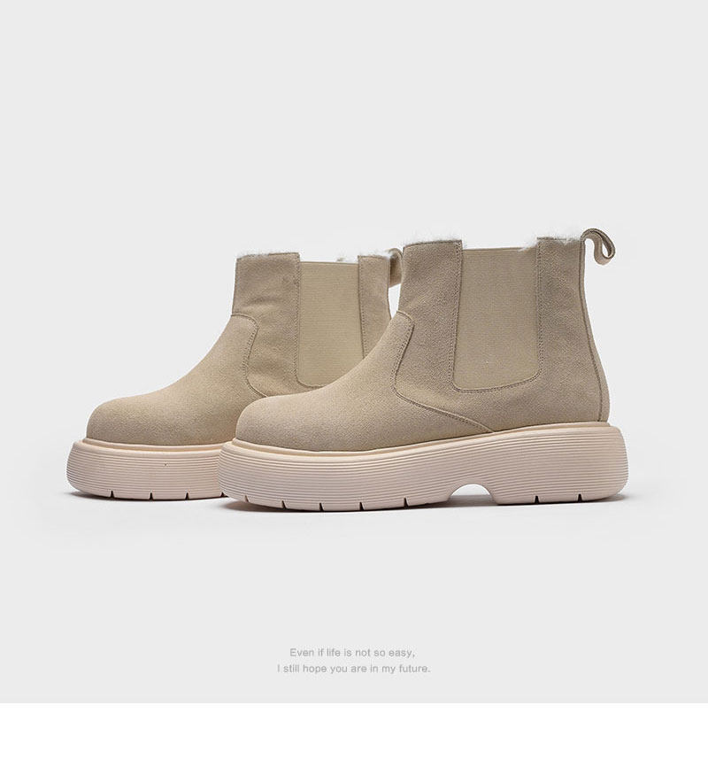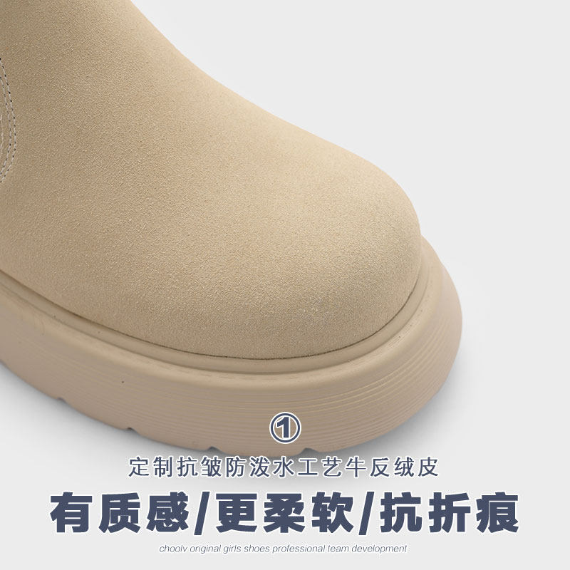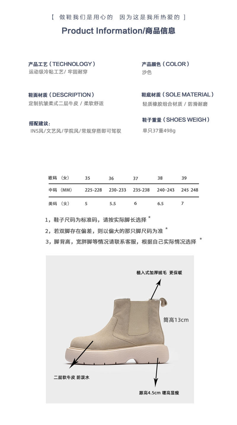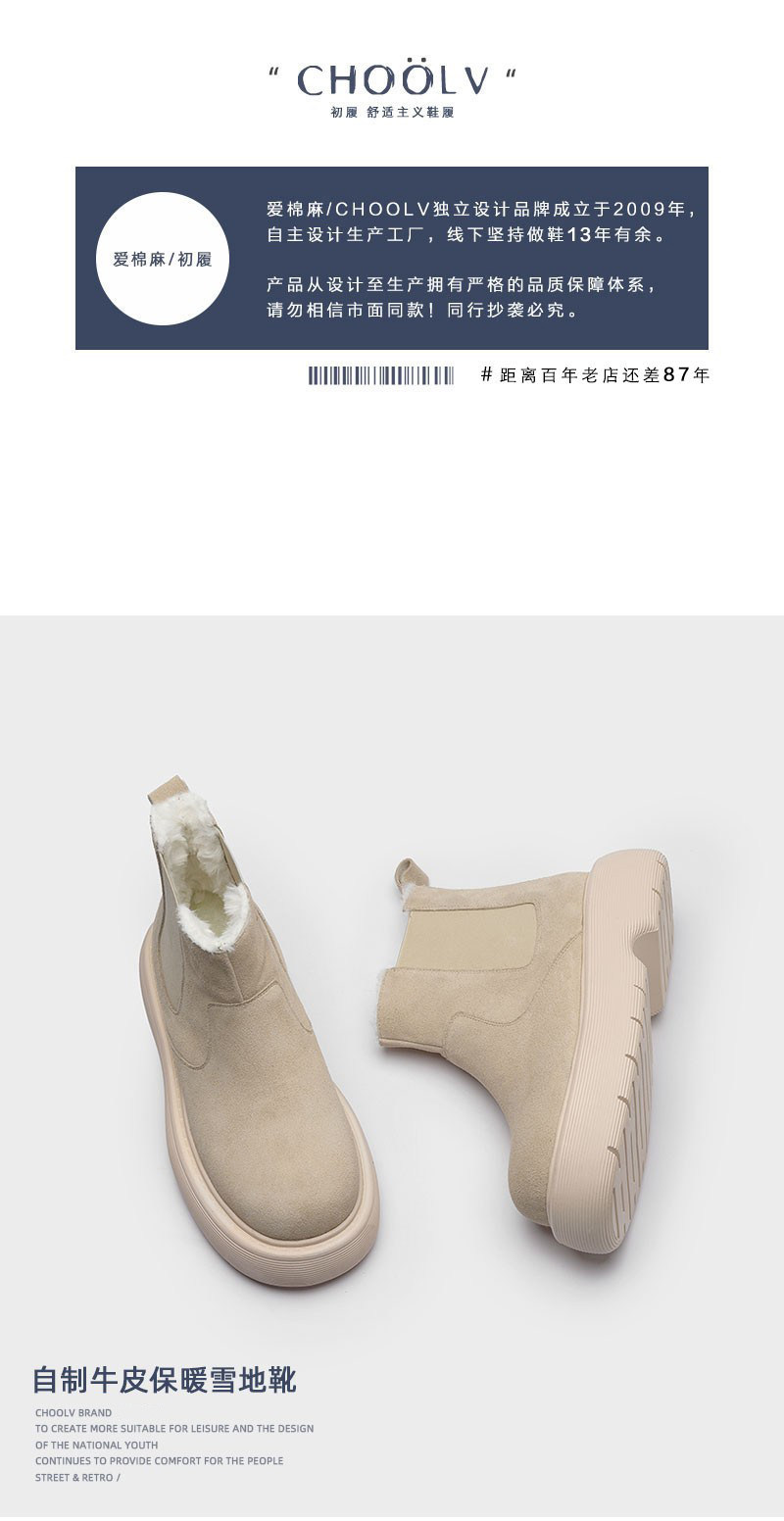 初履 Демисезонные флисовые удерживающие тепло нескользящие сапоги на платформе, из хлопка и льна, из натуральной кожи