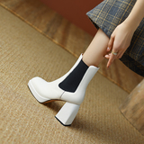 Martens, демисезонные белые короткие сапоги, челси на высоком каблуке, ботинки, из натуральной кожи