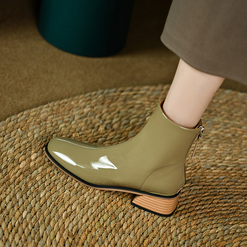 Демисезонные зеленые модные короткие сапоги, коллекция 2022, из натуральной кожи