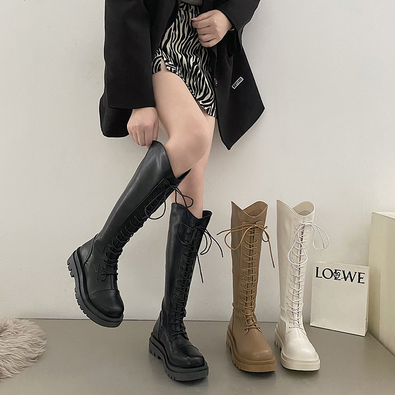 Белый ремень на платформе, демисезонные высокие сапоги, подходит для подростков, коллекция 2022, по фигуре