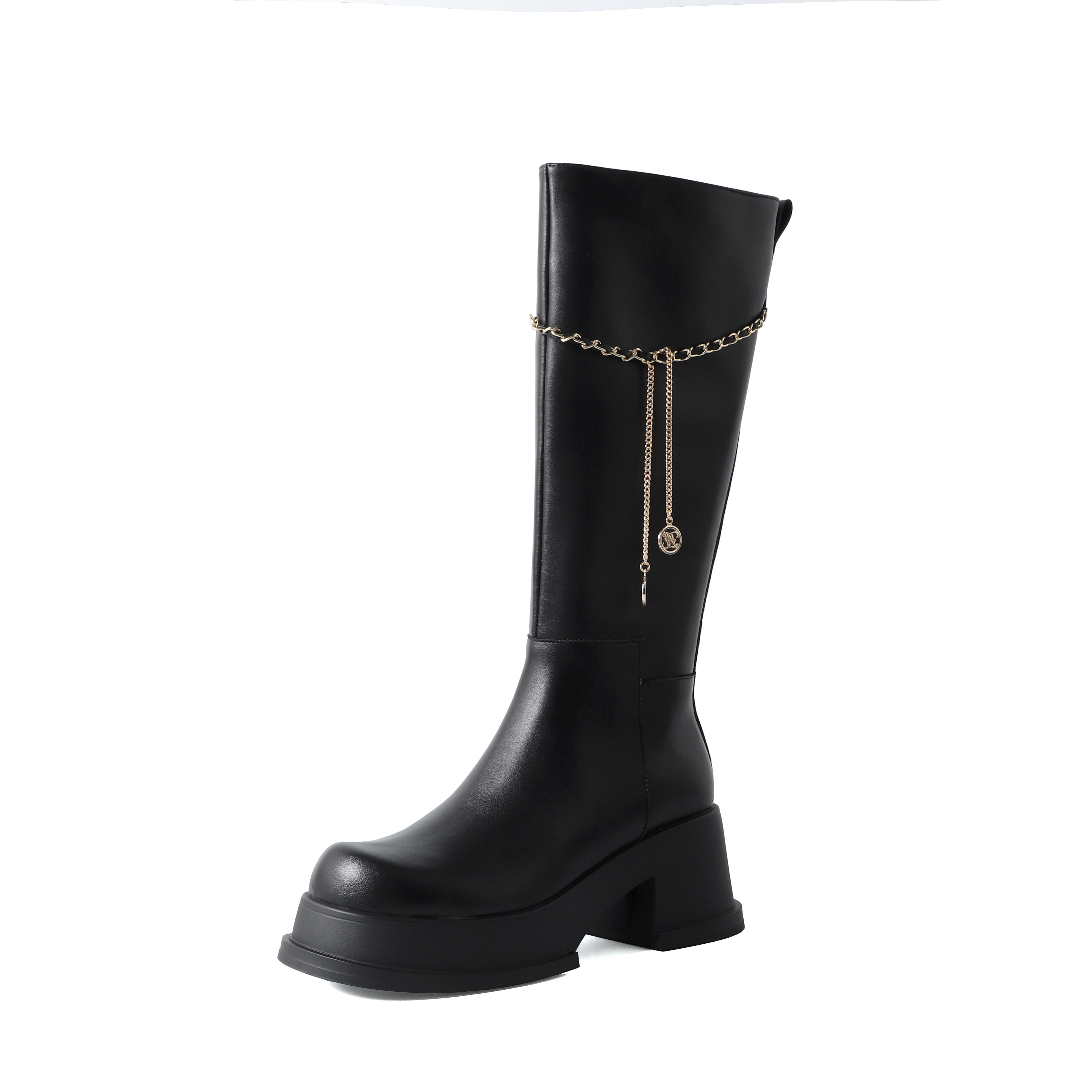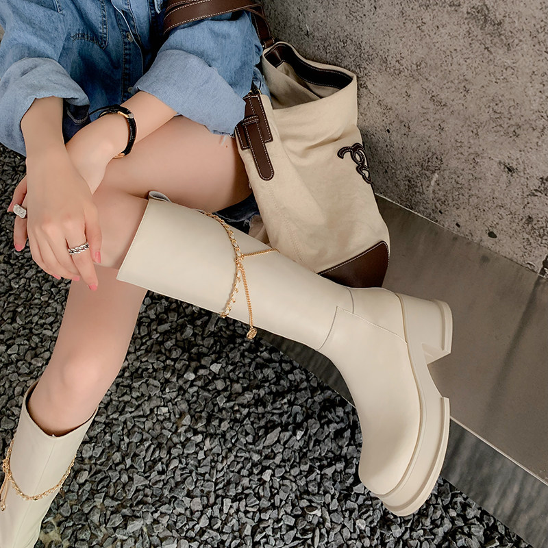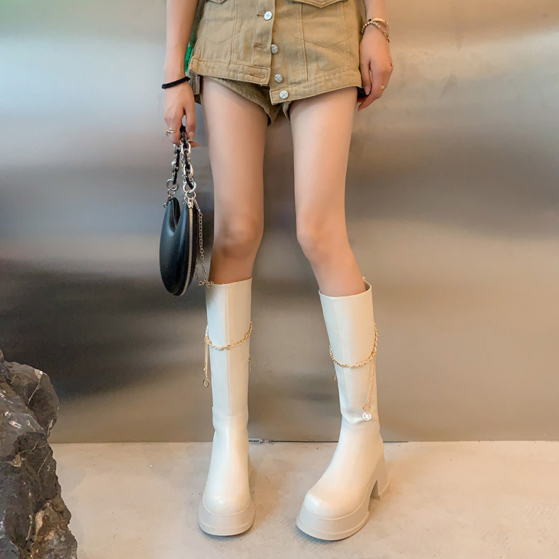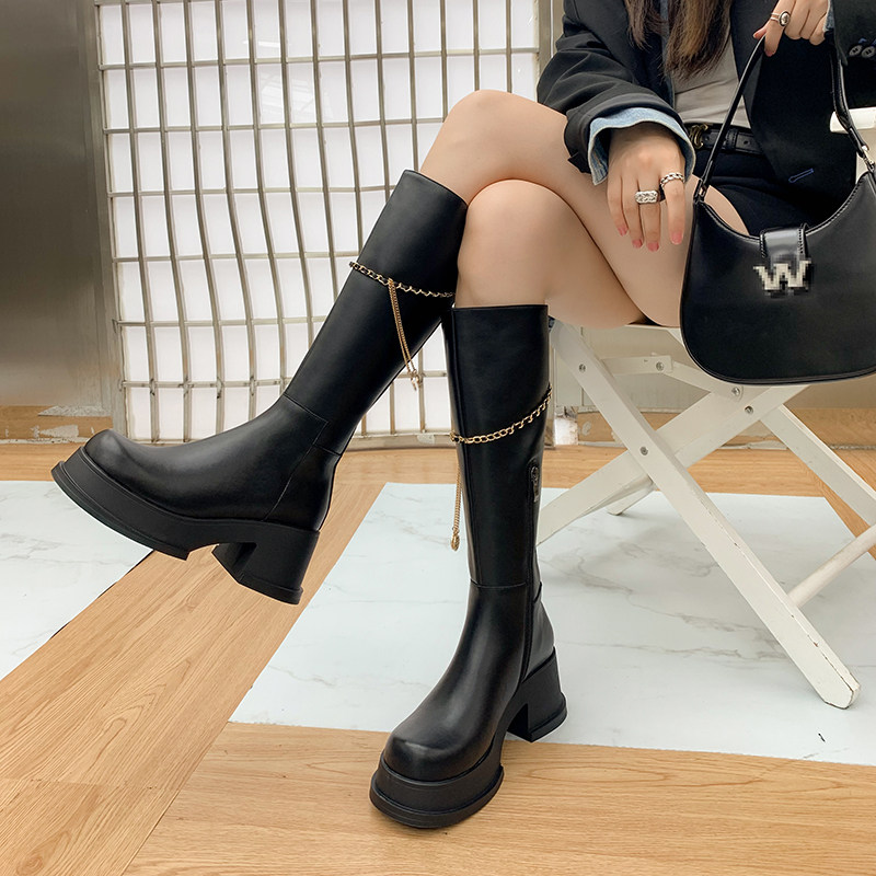 Цепь, высокие демисезонные высокие сапоги, ботинки на платформе, подходит для подростков, из натуральной кожи