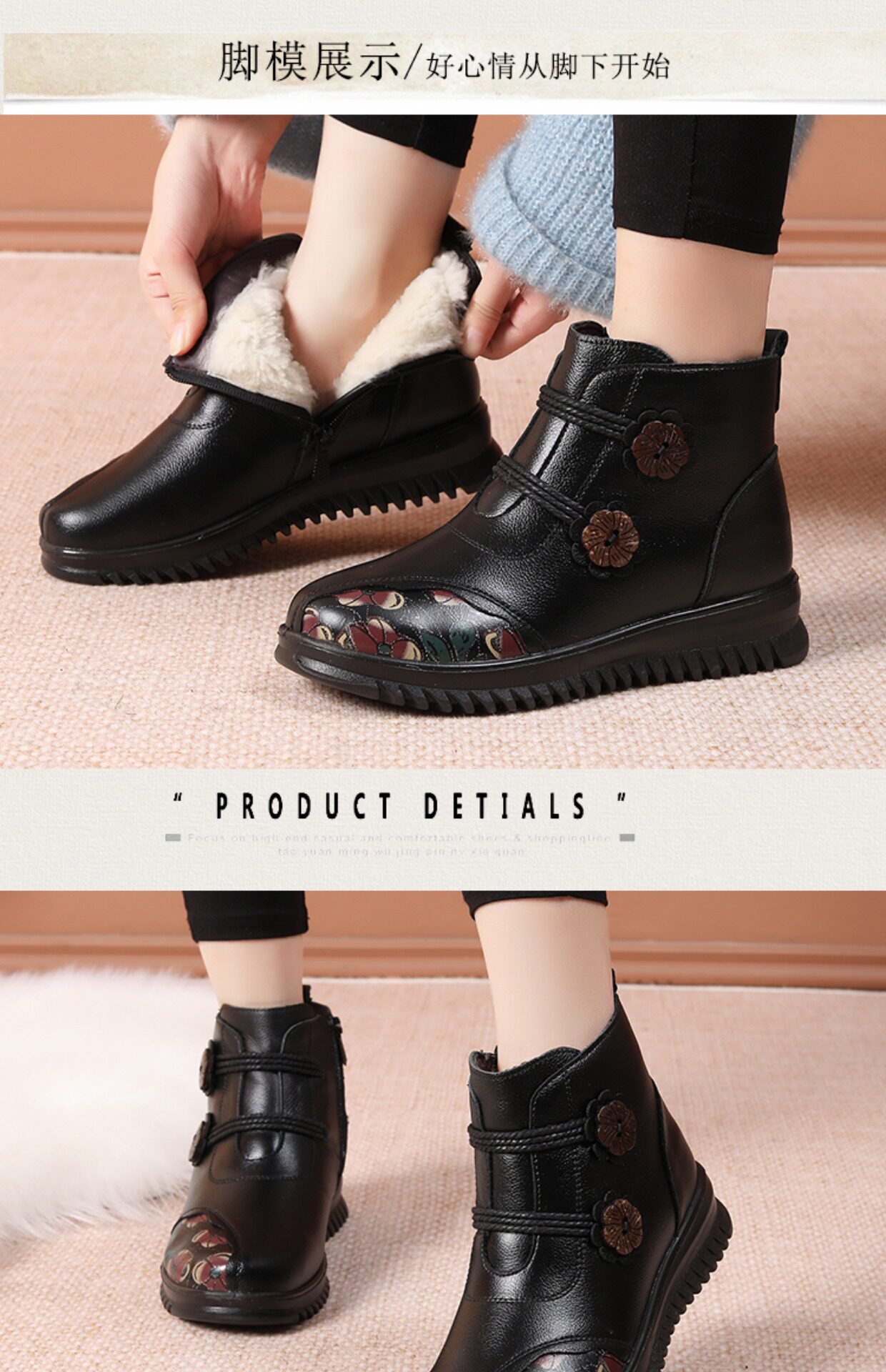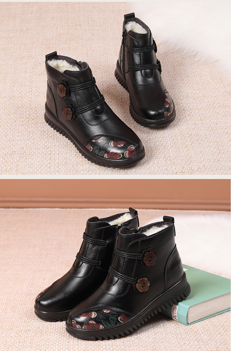 Зимние удерживающие тепло нескользящие флисовые короткие сапоги для матери, из натуральной кожи, для среднего возраста