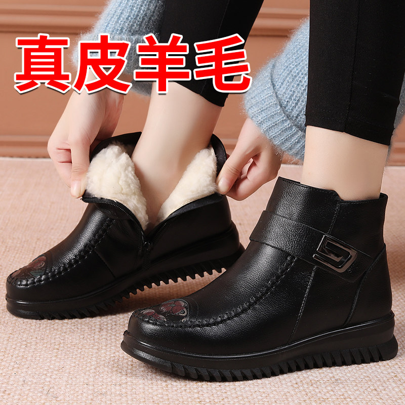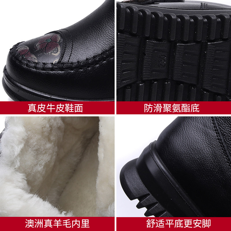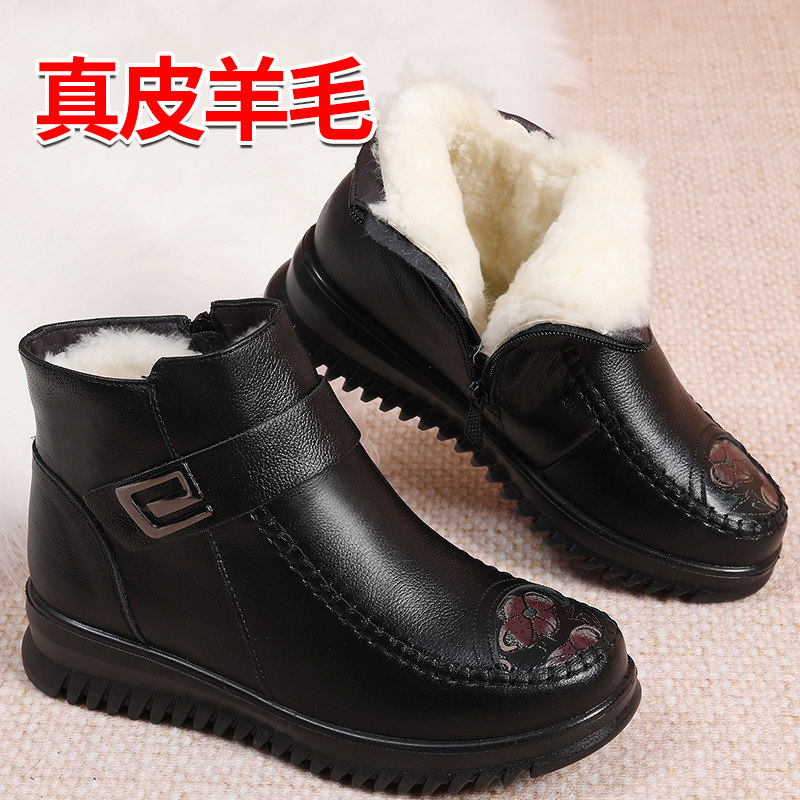 Зимние флисовые удерживающие тепло нескользящие короткие сапоги для матери, из натуральной кожи, для среднего возраста