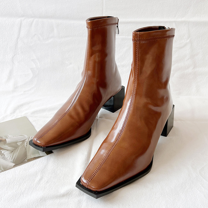 Коричневые модные короткие сапоги в английском стиле с молнией, французский ретро стиль, коллекция 2022, осенние