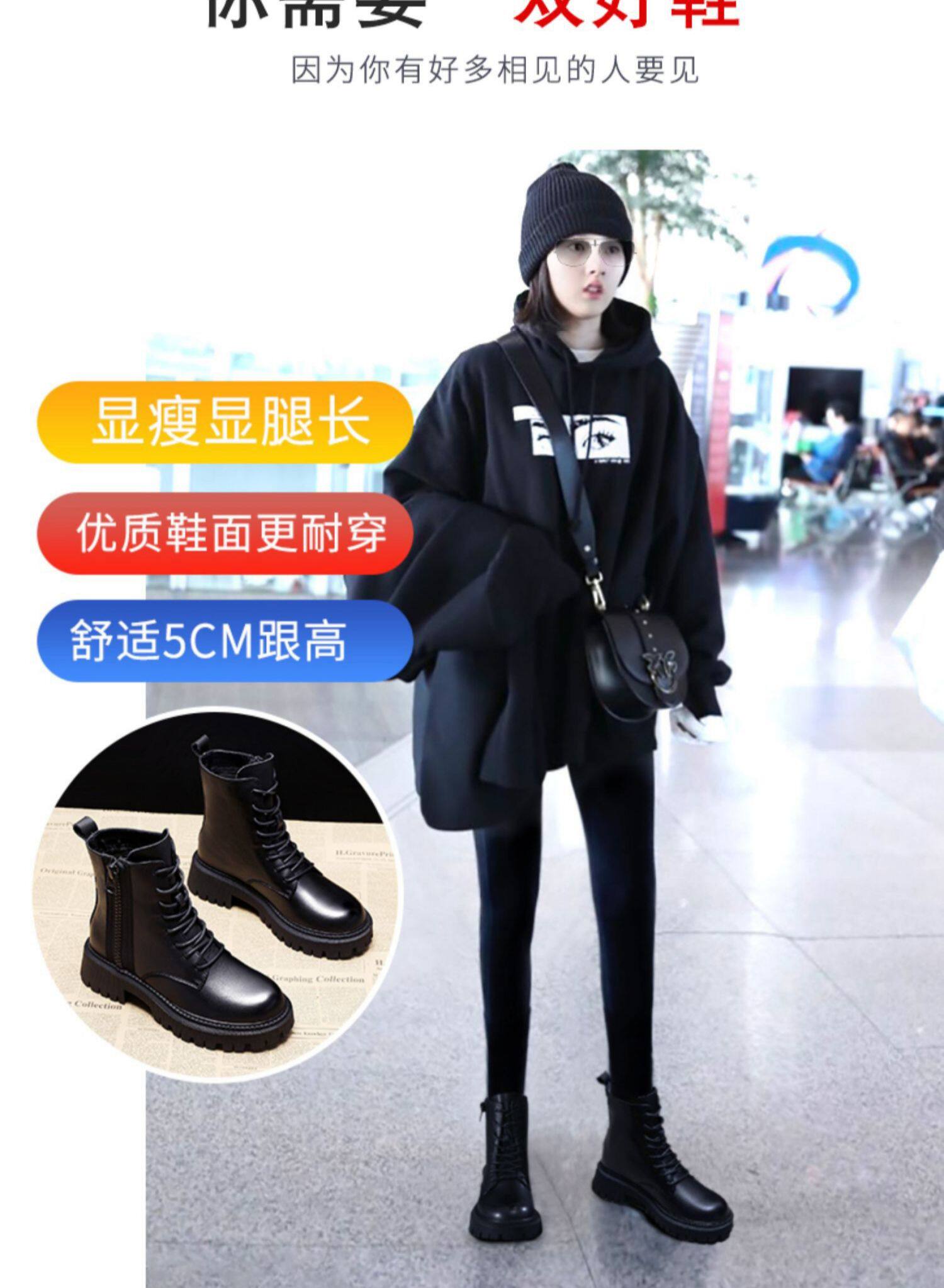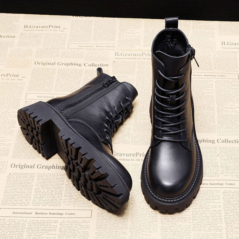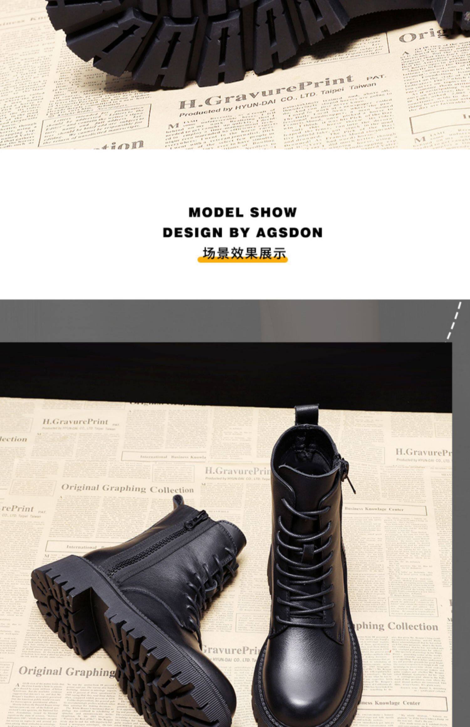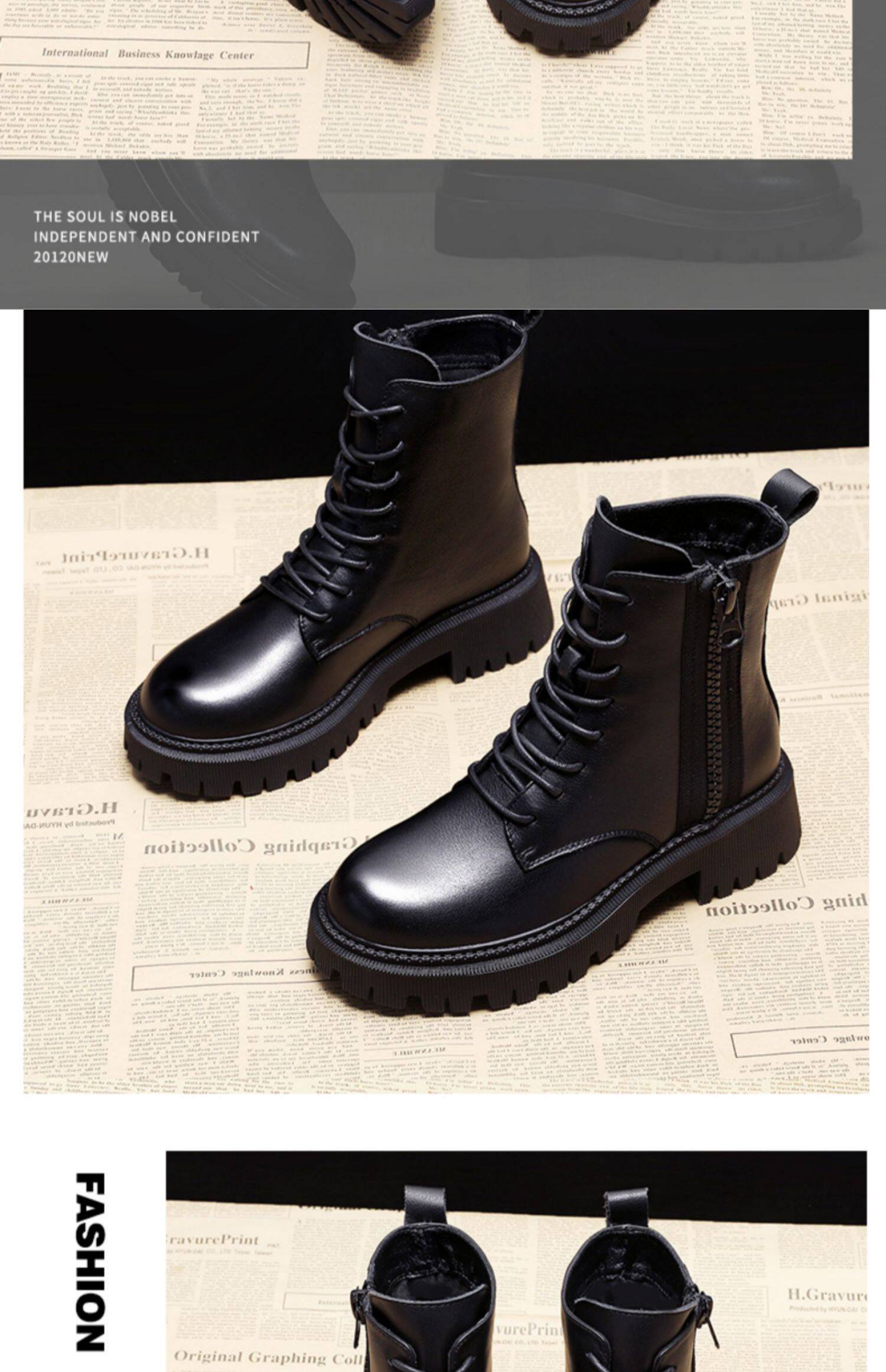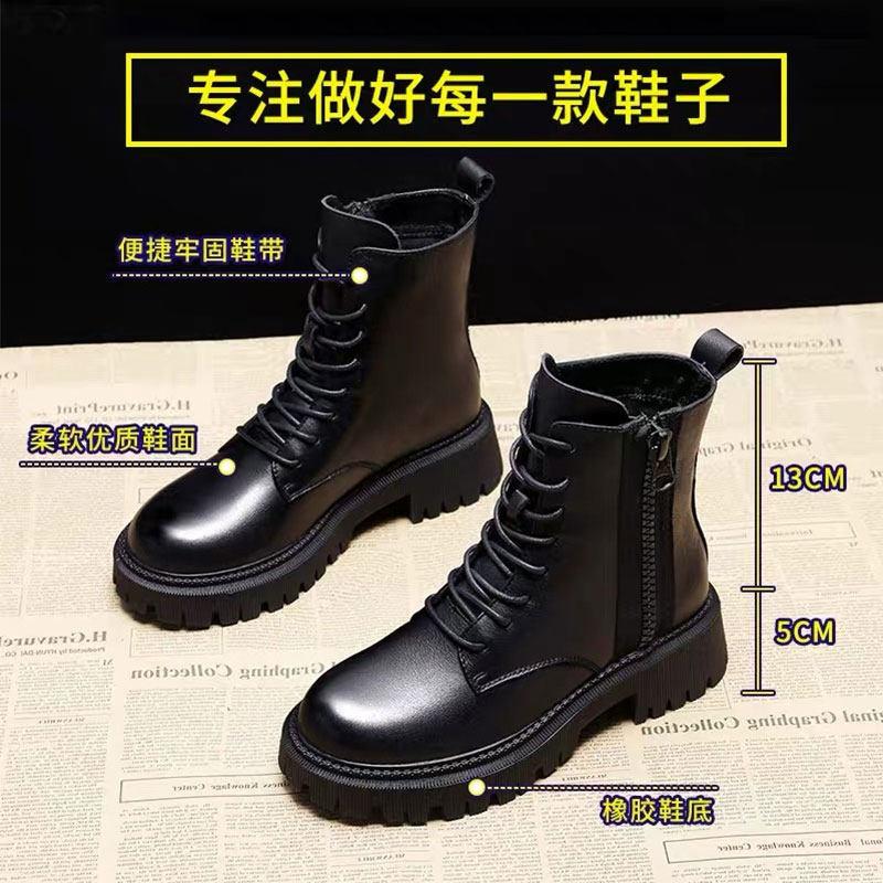 Martens, черные флисовые универсальные короткие сапоги в английском стиле на платформе, ботинки, в британском стиле