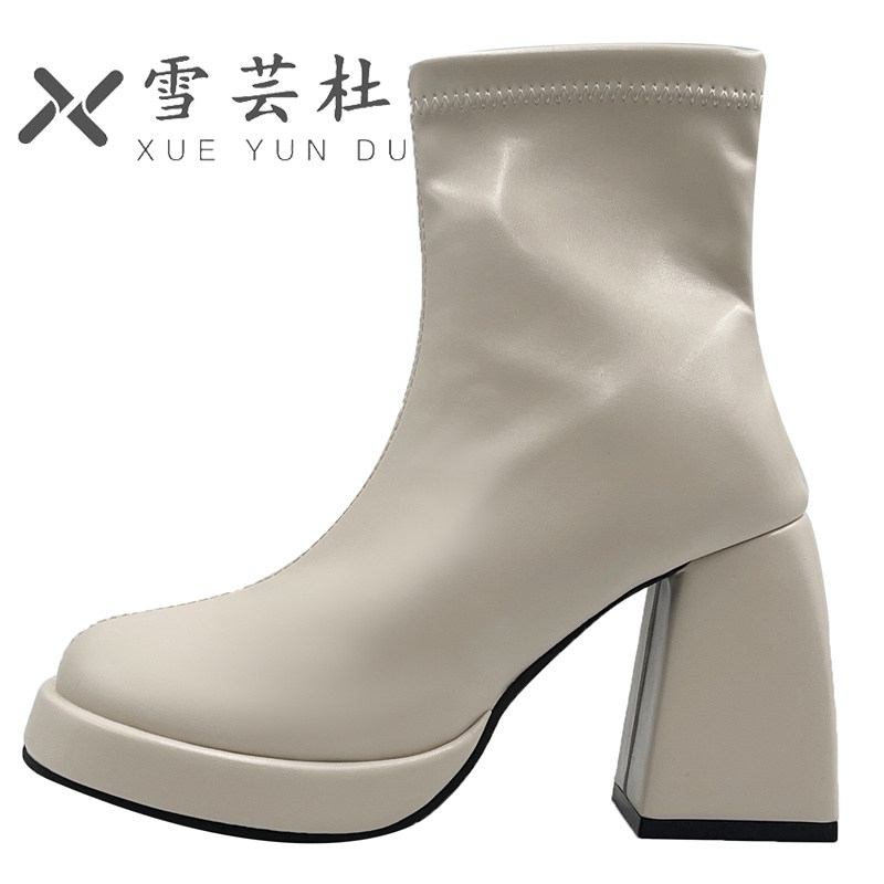 Короткие сапоги, белые эластичные ботинки на высоком каблуке, популярно в интернете, французский ретро стиль
